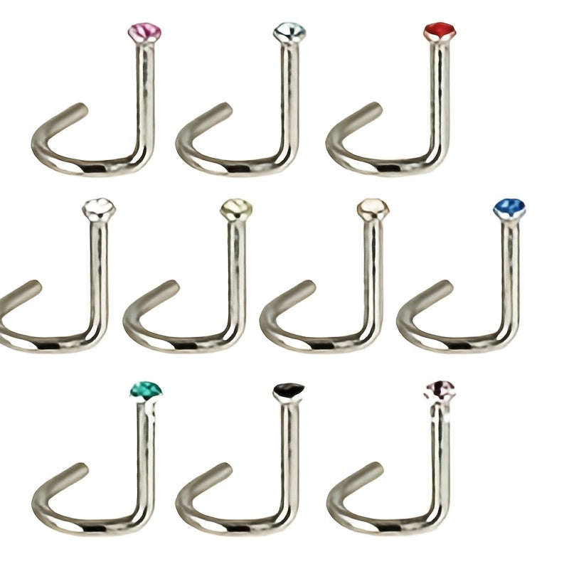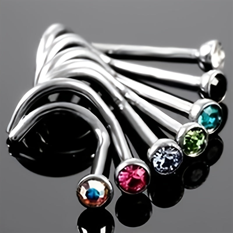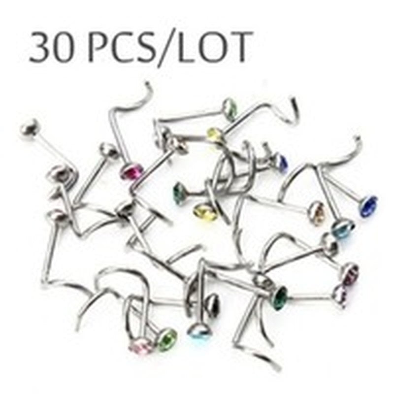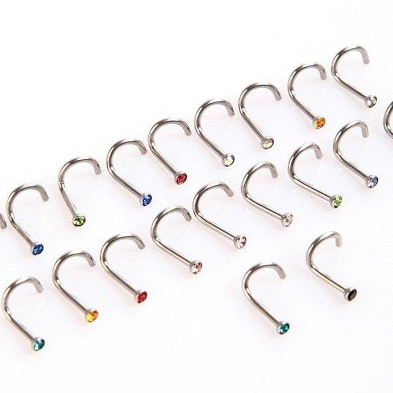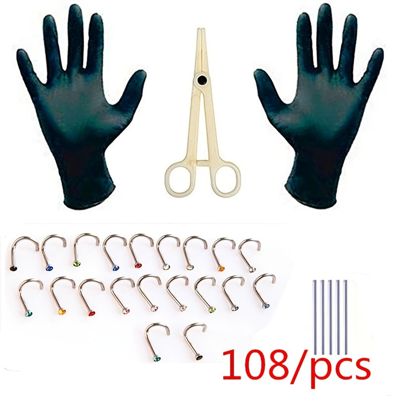 This set includes 108pcs nose rings in vibrant colors made of stainless steel with colorful crystals. Perfect for lady, girls, and women.