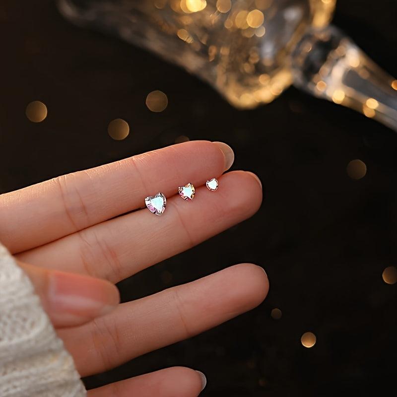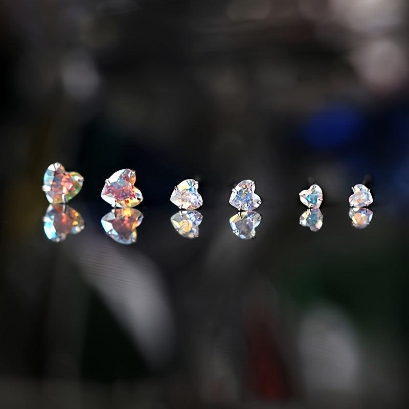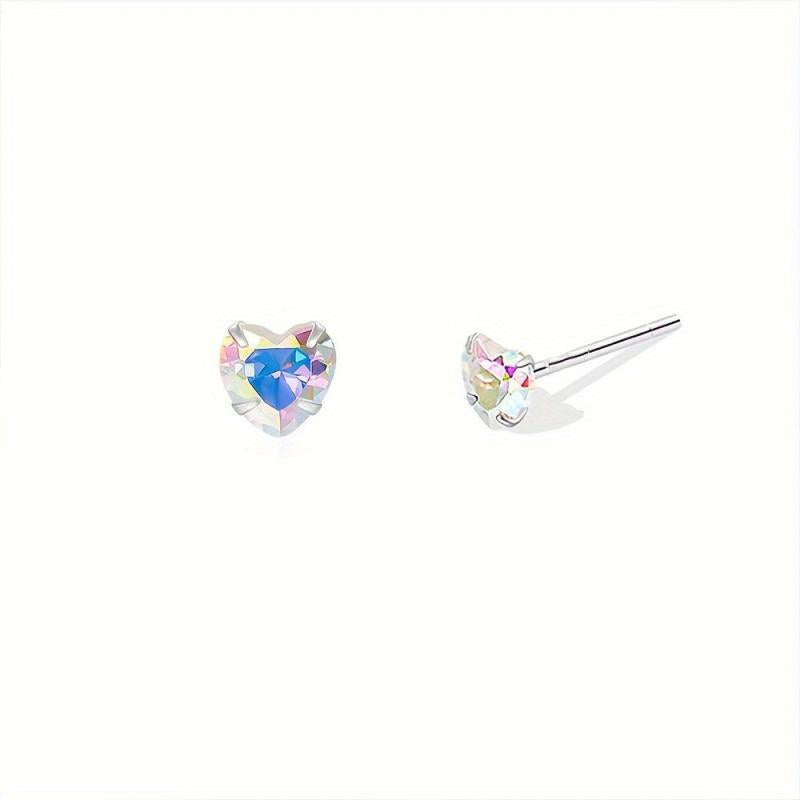 Colorful Heart Shaped CZ Sterling Silver Earrings