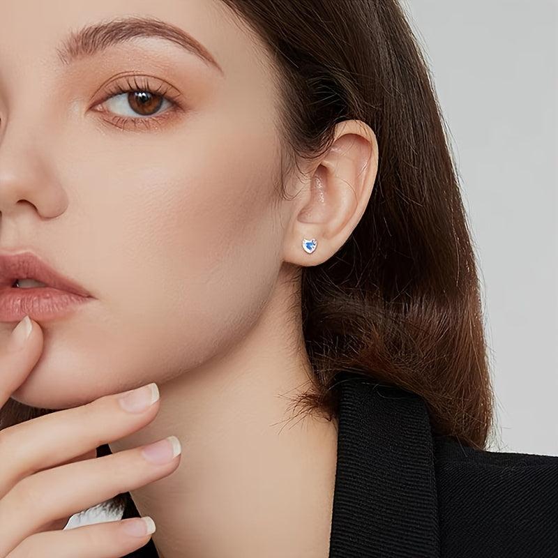 These sparkling heart-shaped earrings feature colorful synthetic cubic zirconia stones in a 925 sterling silver post with 14K gold plating. The hypoallergenic studs are perfect for sensitive ears.