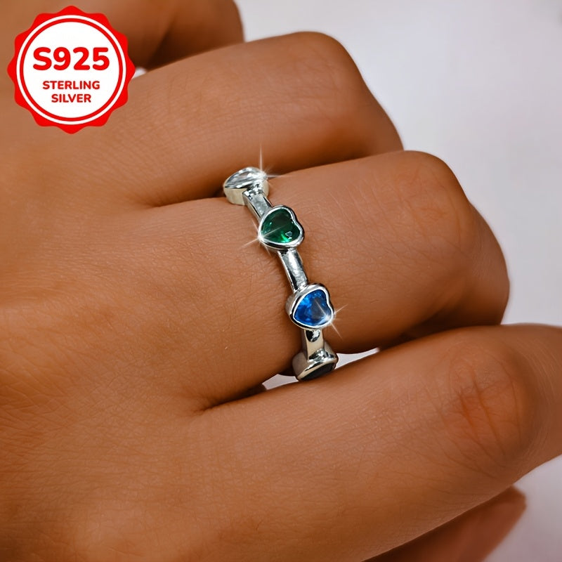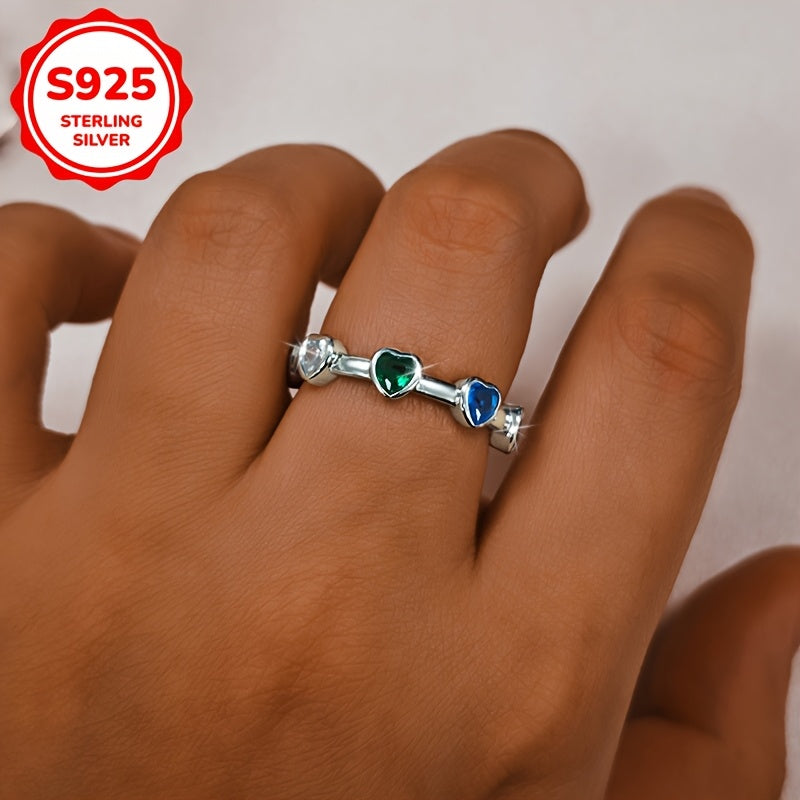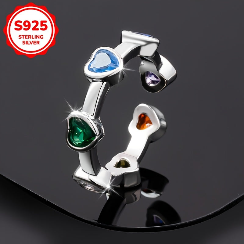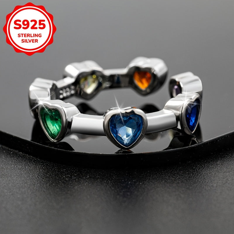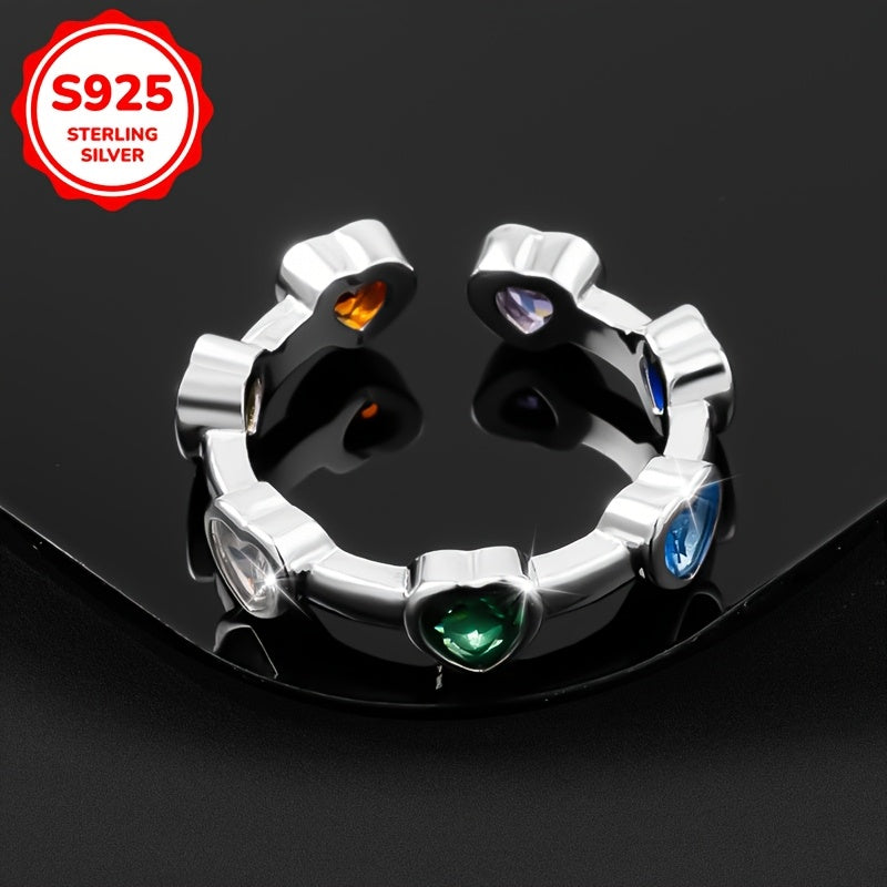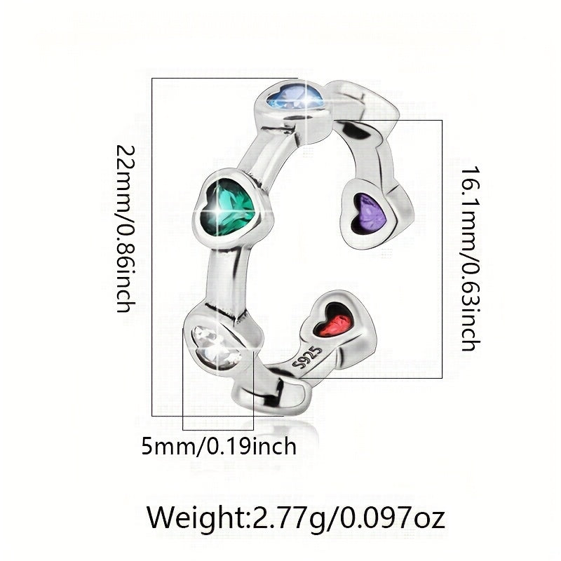 Colorful Heart Synthetic Zirconia Ring 925 Silver 2.77g