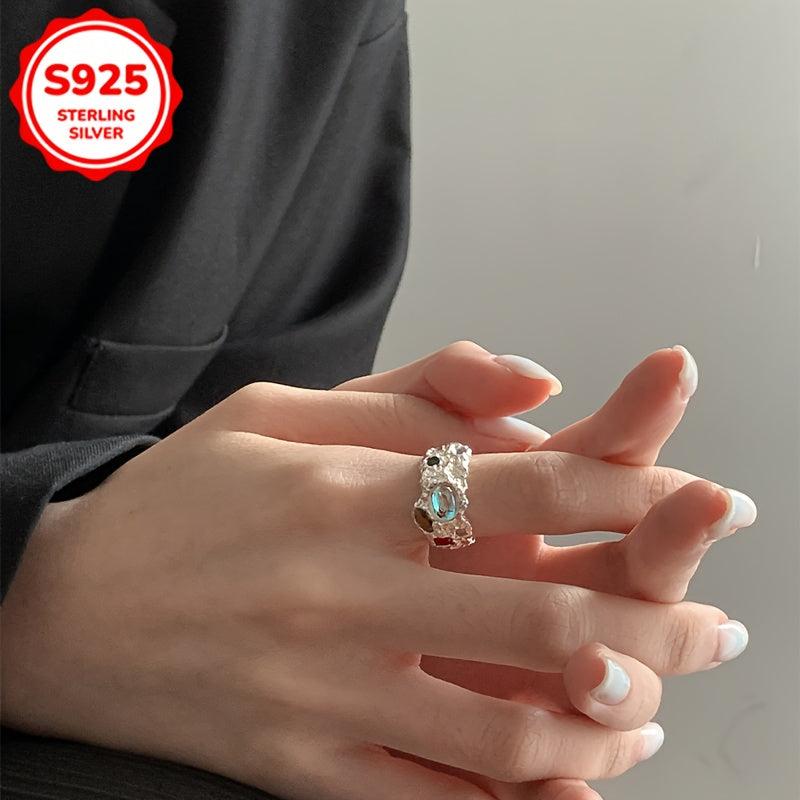 Add a pop of color to your outfit with this S925 irregular ring. Perfect for casual attire, it's a great gift for BFFs or loved ones. The design is suitable for those with allergies.