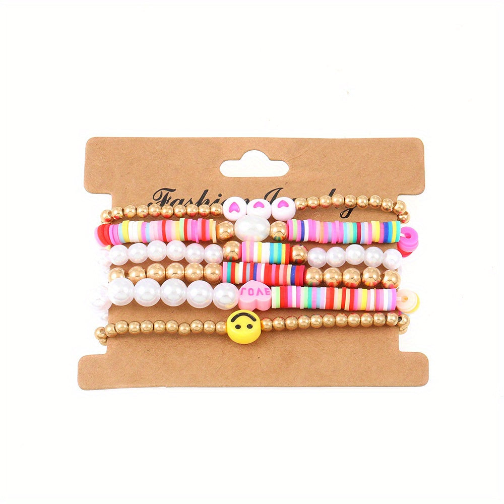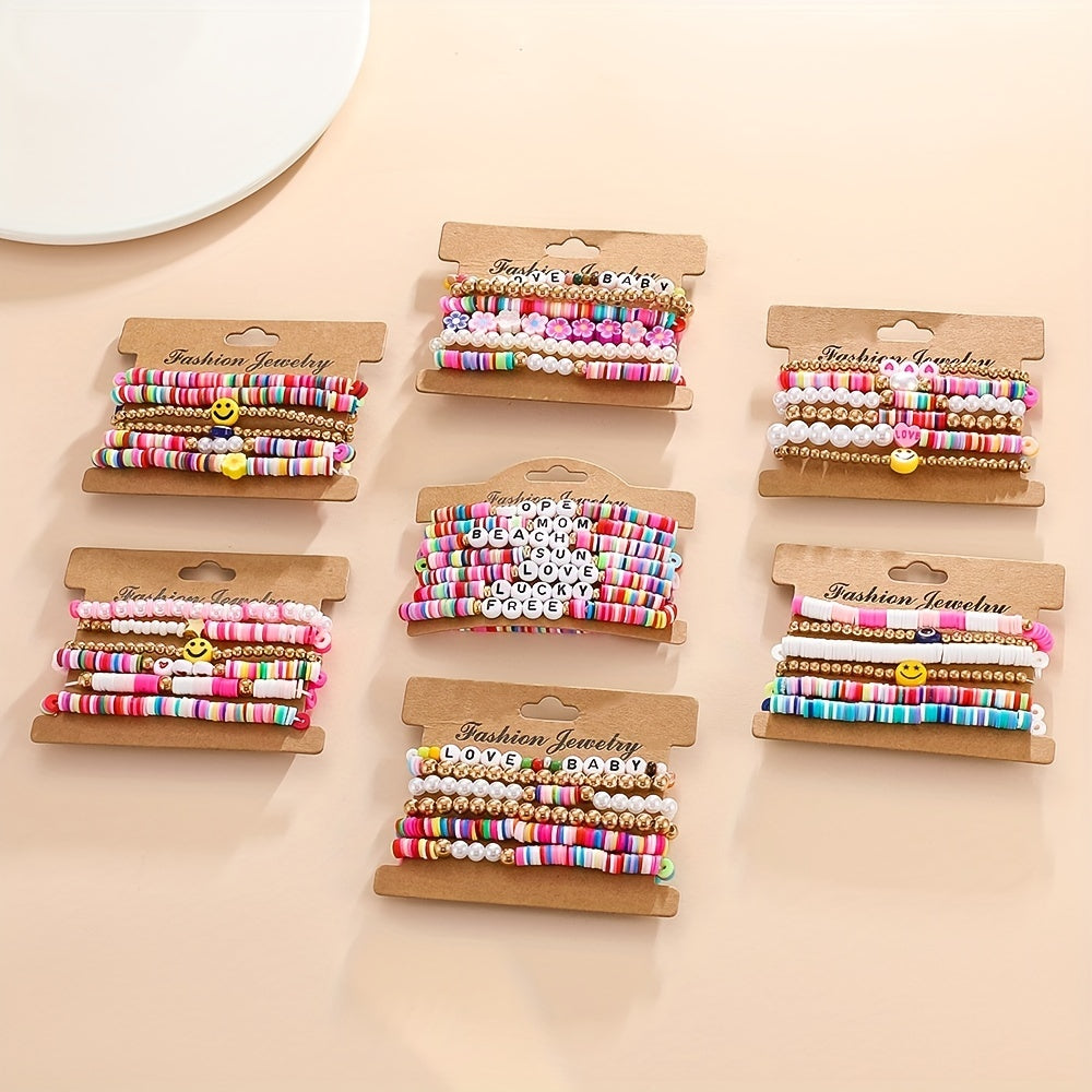 This colorful soft pottery beaded bracelet is a stylish accessory for girls and ladies. The stretch design makes it easy to wear and stack with other bracelets.