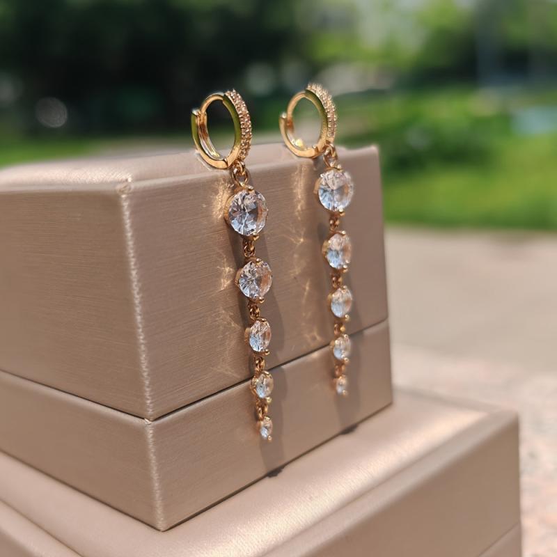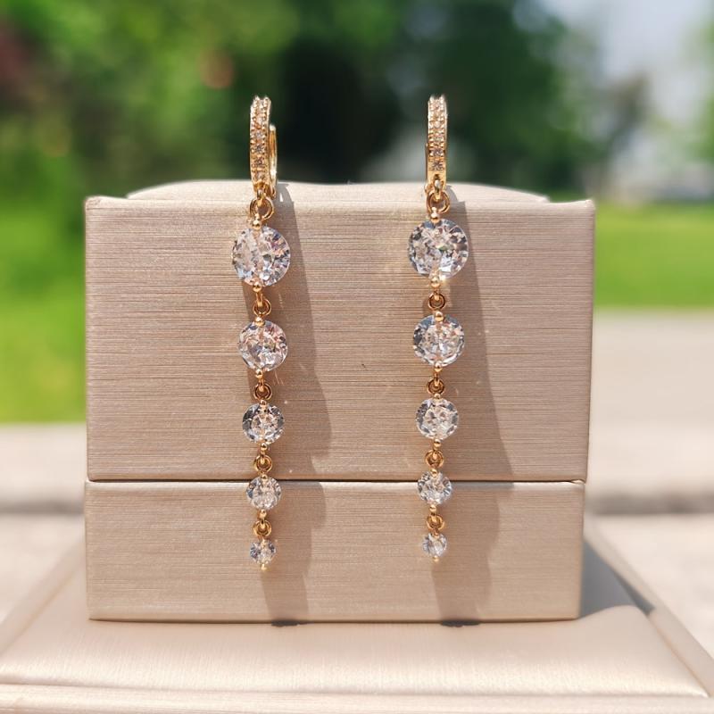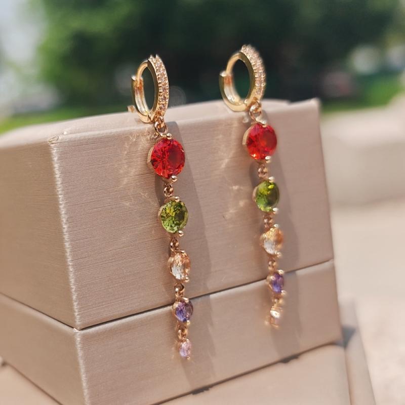 Colorful Tassel Pendant Earrings with Zirconia for Wedding Party