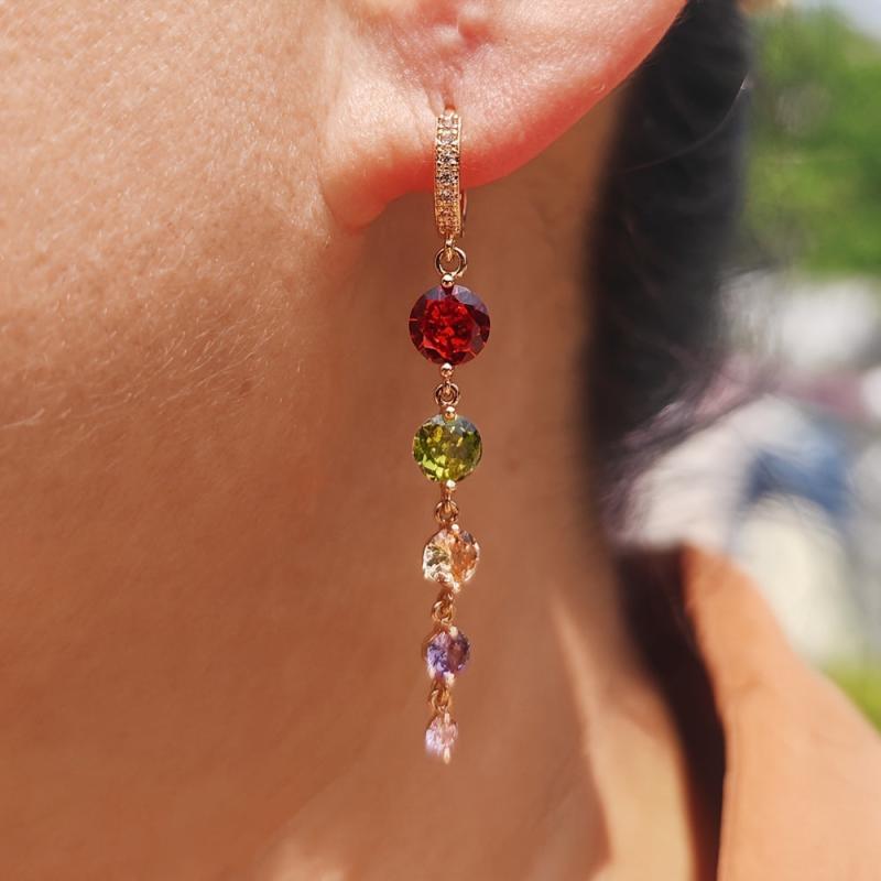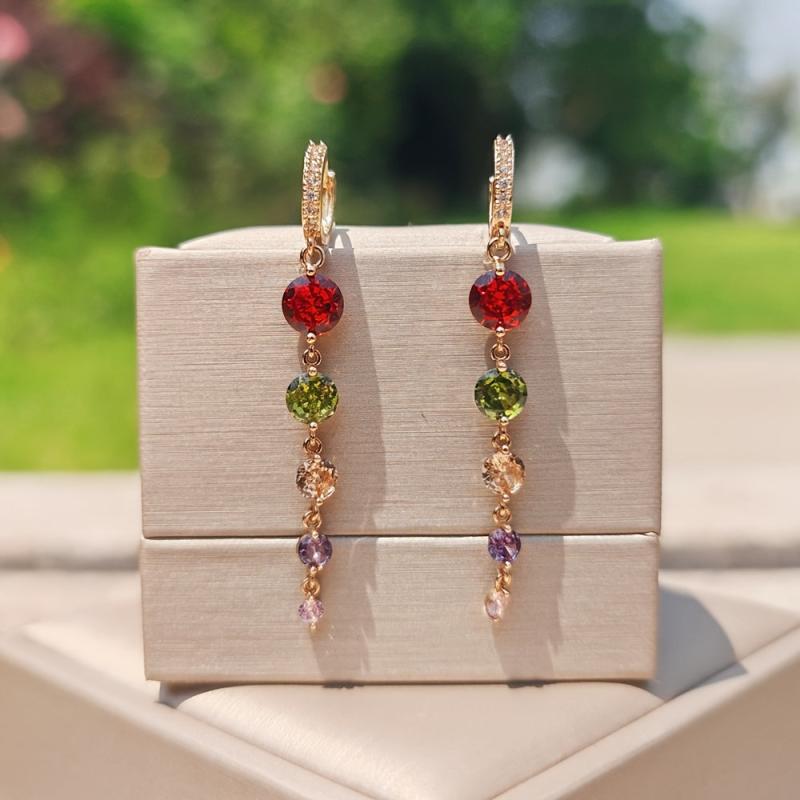 Add a pop of color to your outfit with these vibrant round long tassel pendant earrings featuring synthetic zirconia. Perfect for weddings, parties, and special occasions.