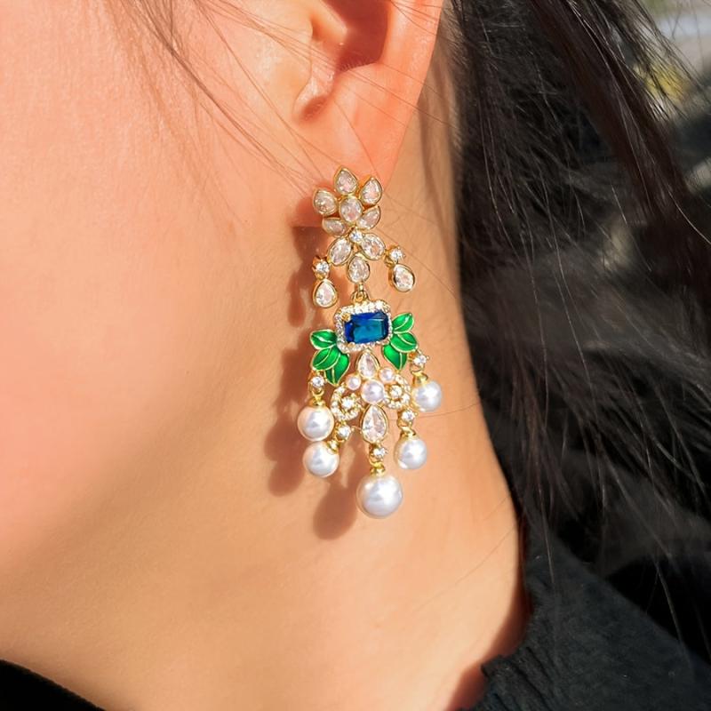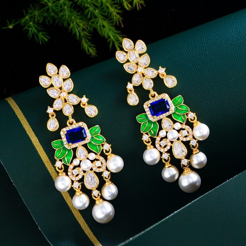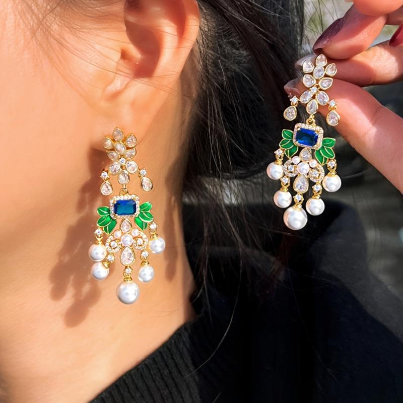 Colorful Zirconia Pearl Dangle Earrings for Banquet Style