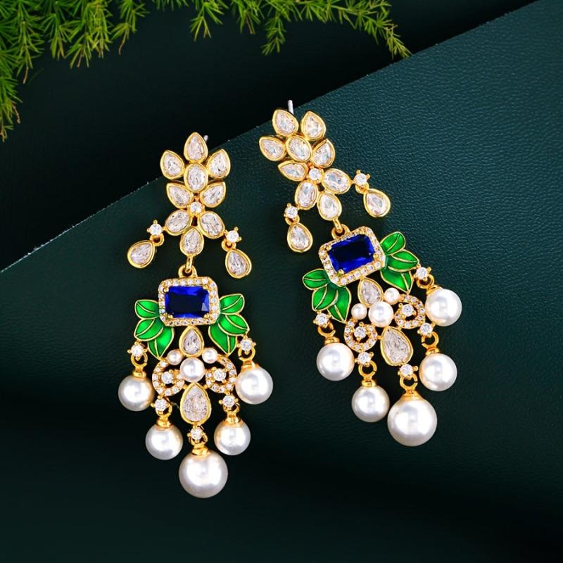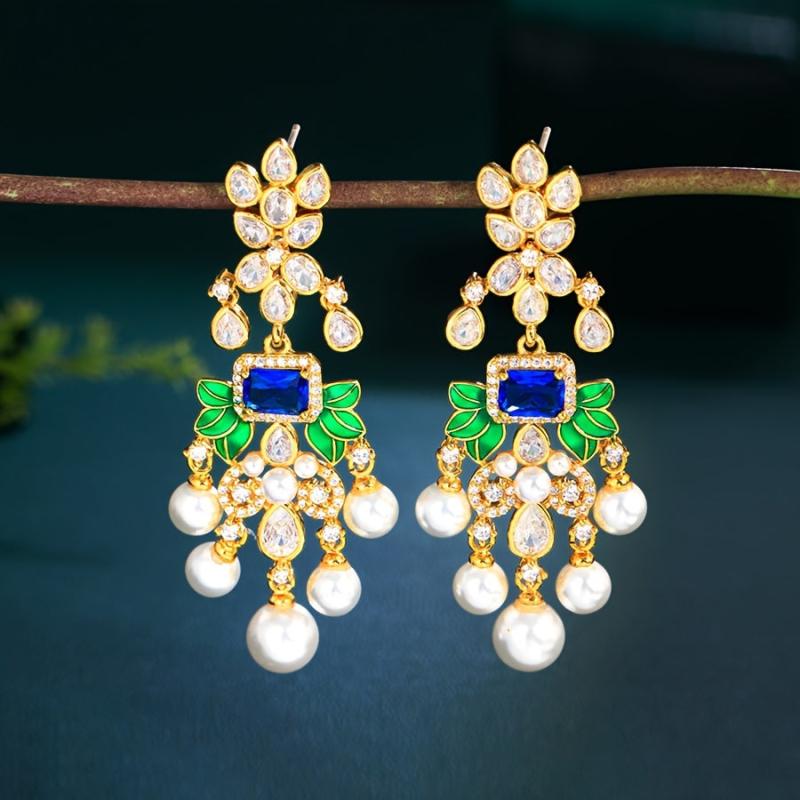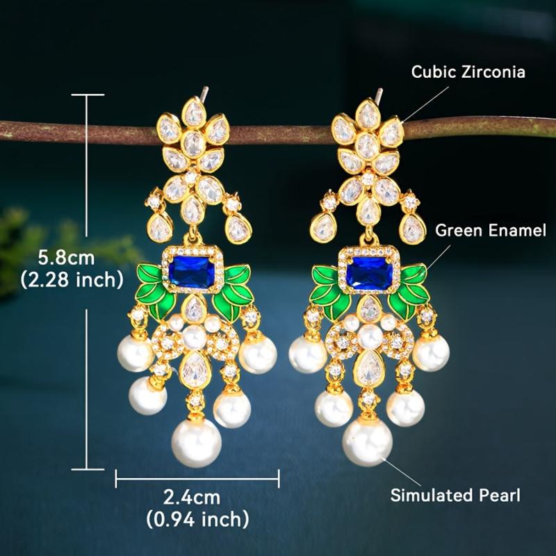 Elevate your look with these colorful zirconia and artificial pearl dangle earrings, perfect for banquet style events. These earrings are a stunning addition to any outfit.