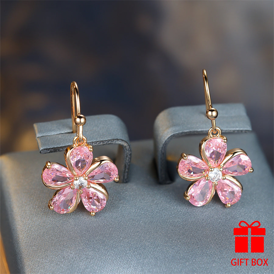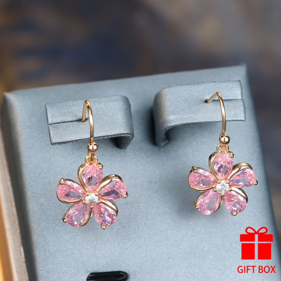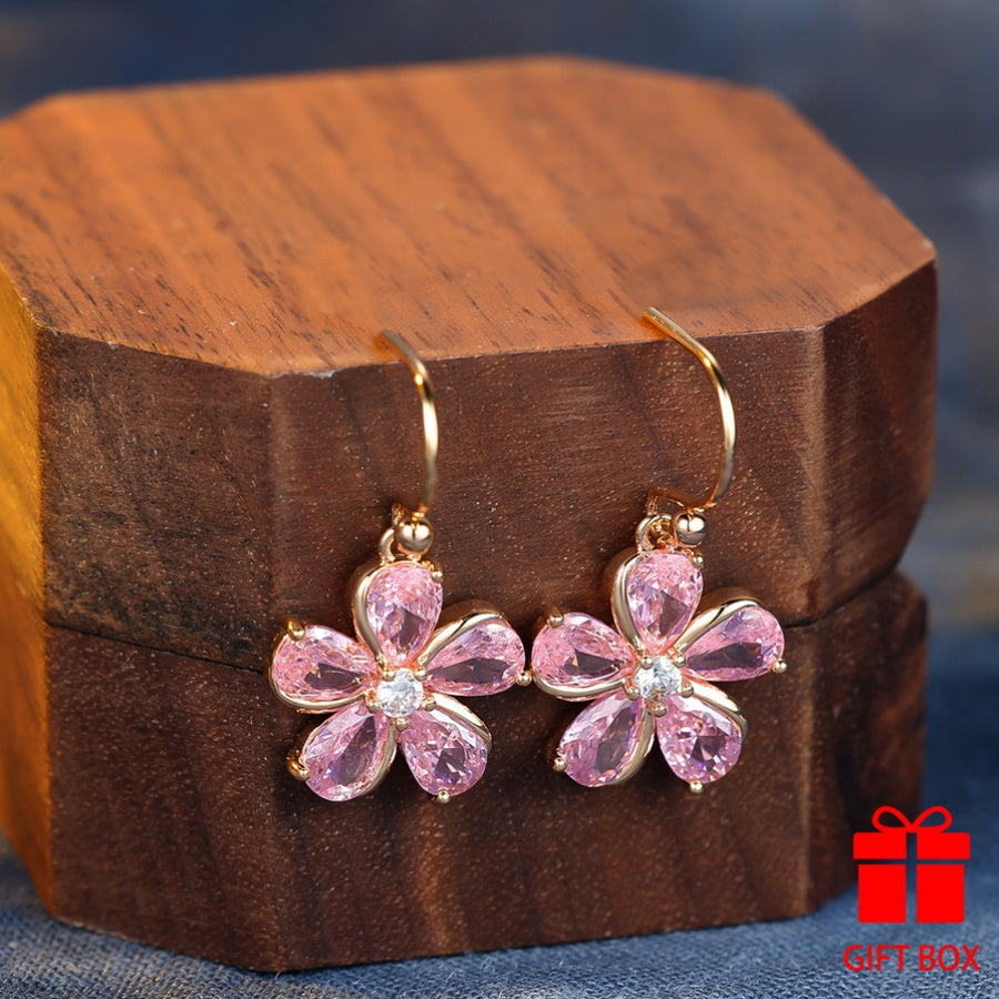 Beautiful copper dangle earrings featuring pink zirconia, perfect as a Valentine's Day gift or for someone born in December.