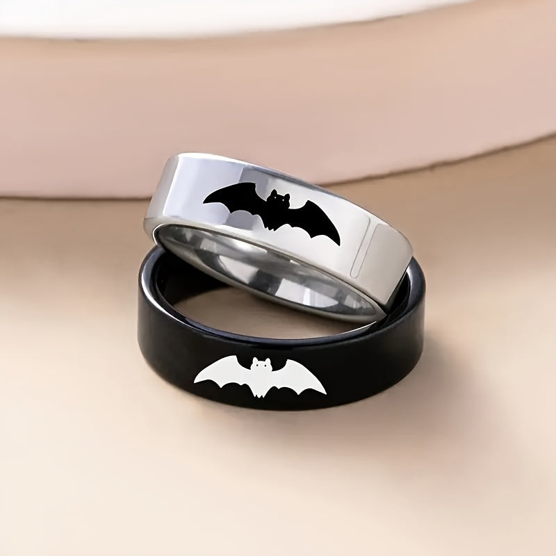 Couple Halloween Bat Stainless Steel Rings Hip Hop Style