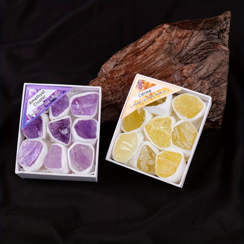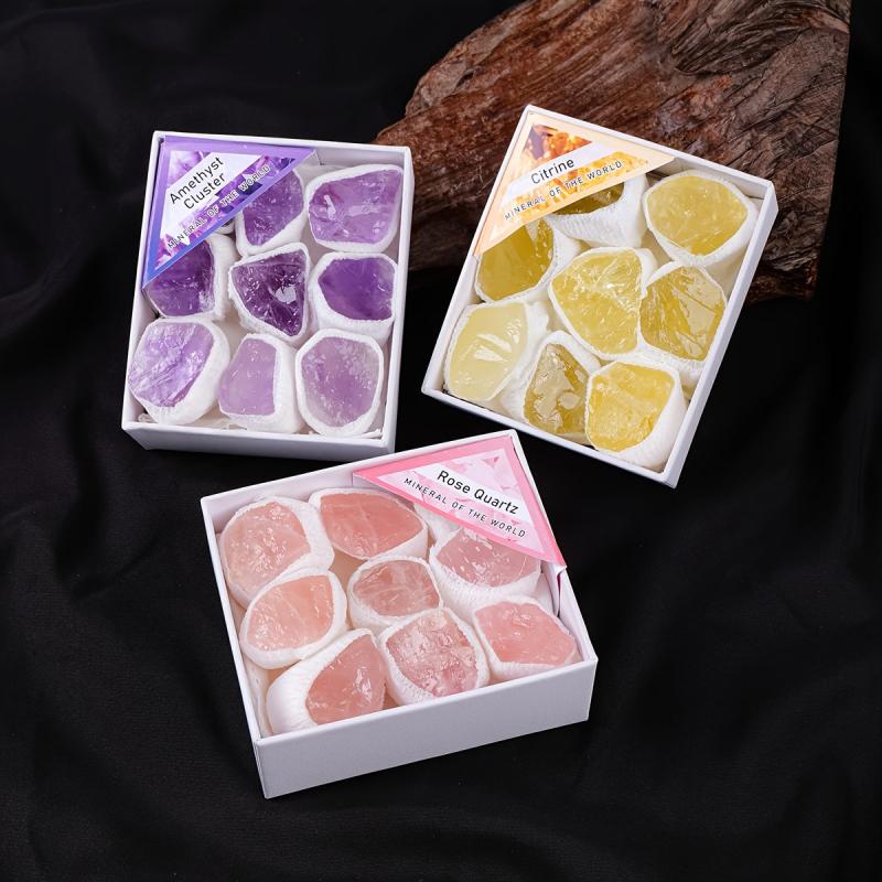 Create stunning jewelry or decor pieces with this crystal geode wrapping set. Includes rose quartz, amethyst, green fluorite, and clear quartz for a touch of elegance.