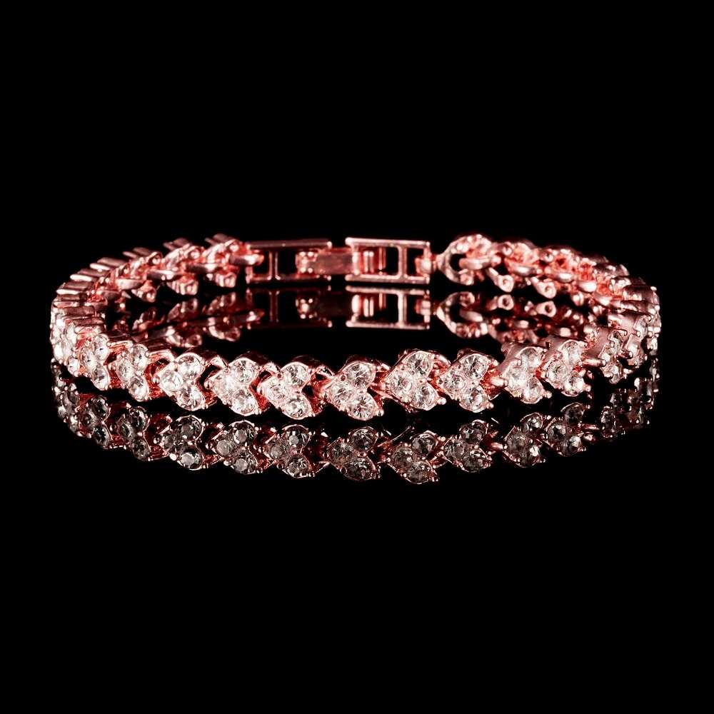 Women's Rose Gold Heart Tennis Bracelet Inlaid With Cubic Zirconia