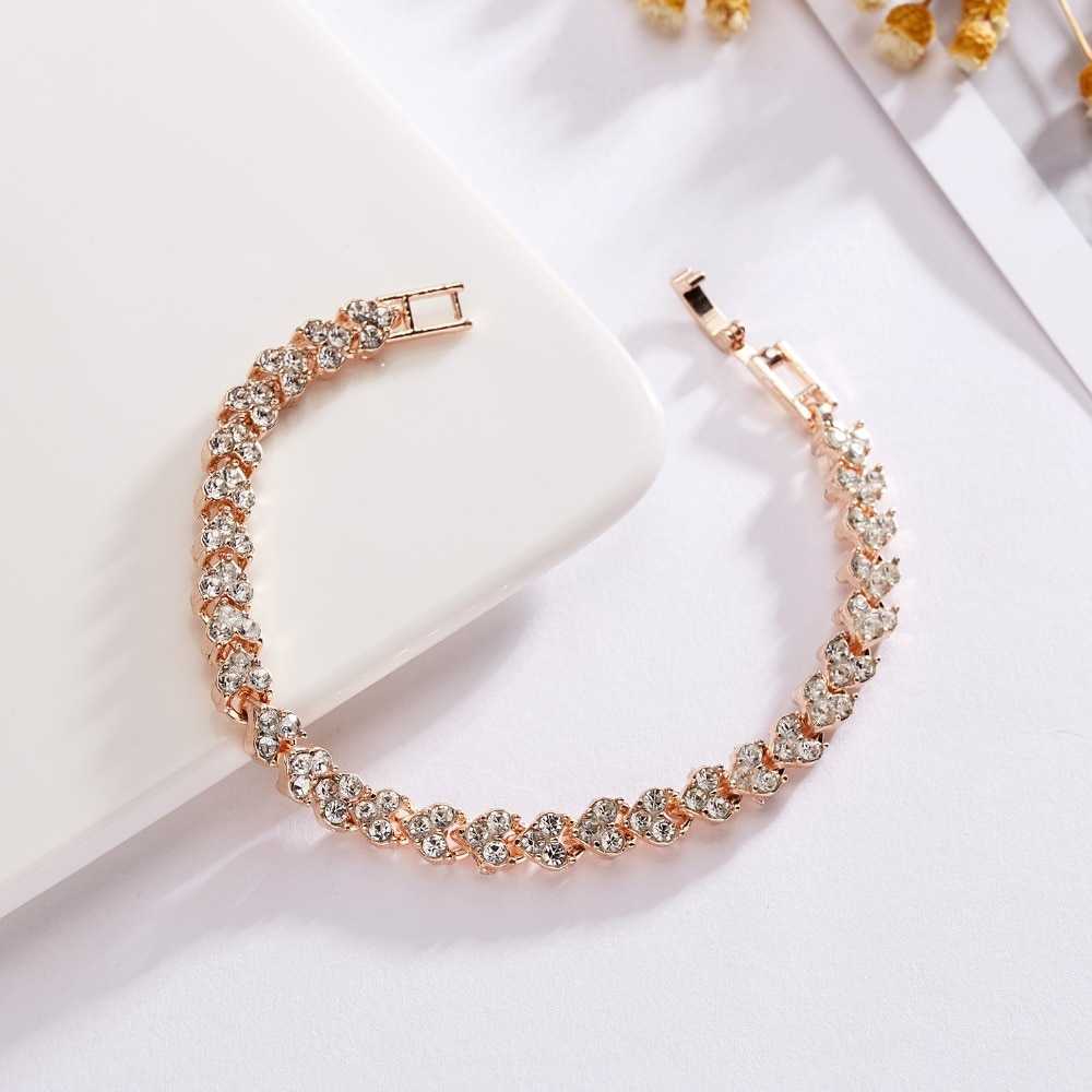 • Product Particulars: This bracelet is crafted from high quality metal with a rose gold plating, giving it a warm and luxurious appearance. Rose gold is known for its romantic appeal and complements a variety of skin tones. The bracelet is secured with a fold over clasp closure, which is a type of closure commonly used in jewelry for its sleek and secure design.