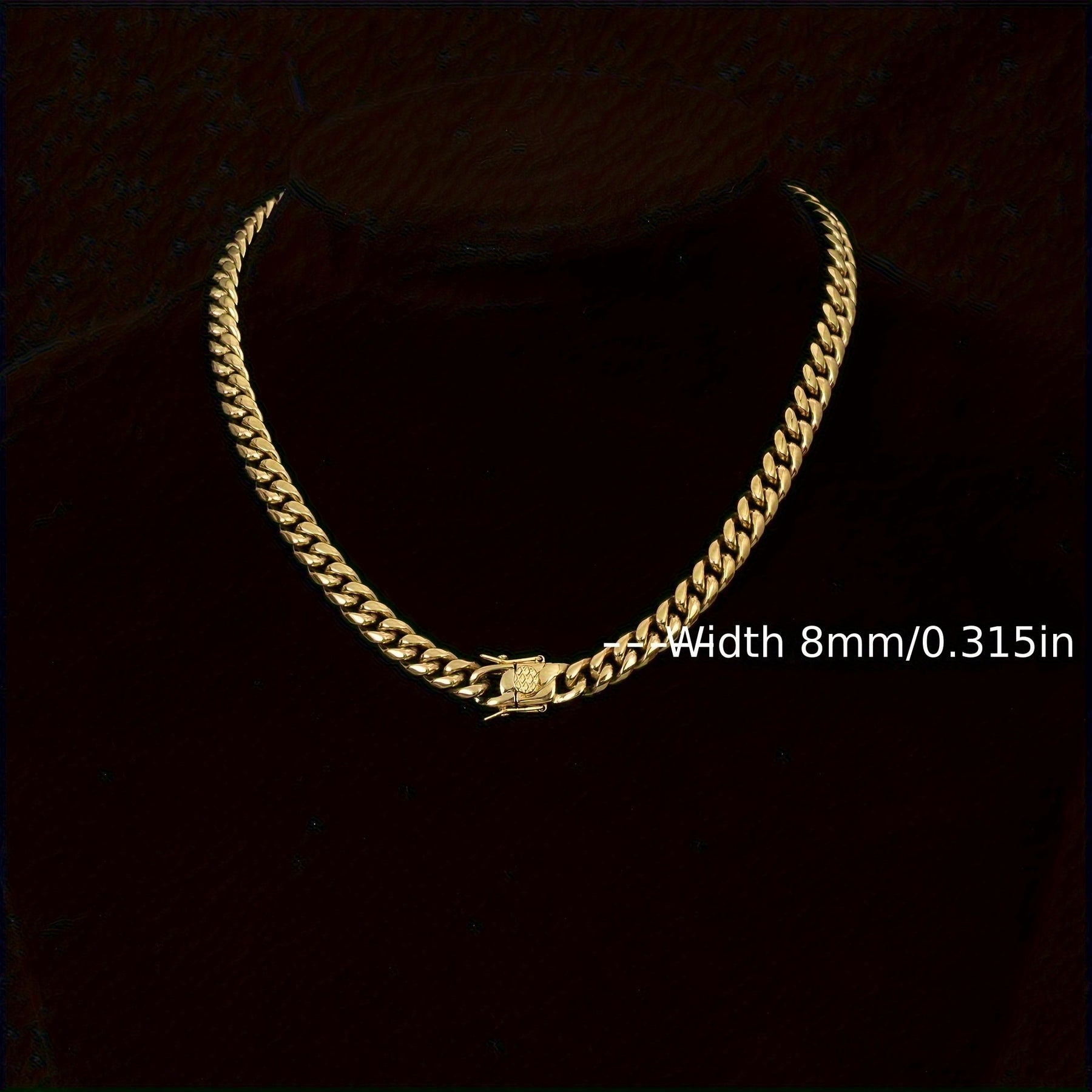 Cuban Chain Necklace & Bracelet Set 8mm Wide Polished Finish Stainless Steel