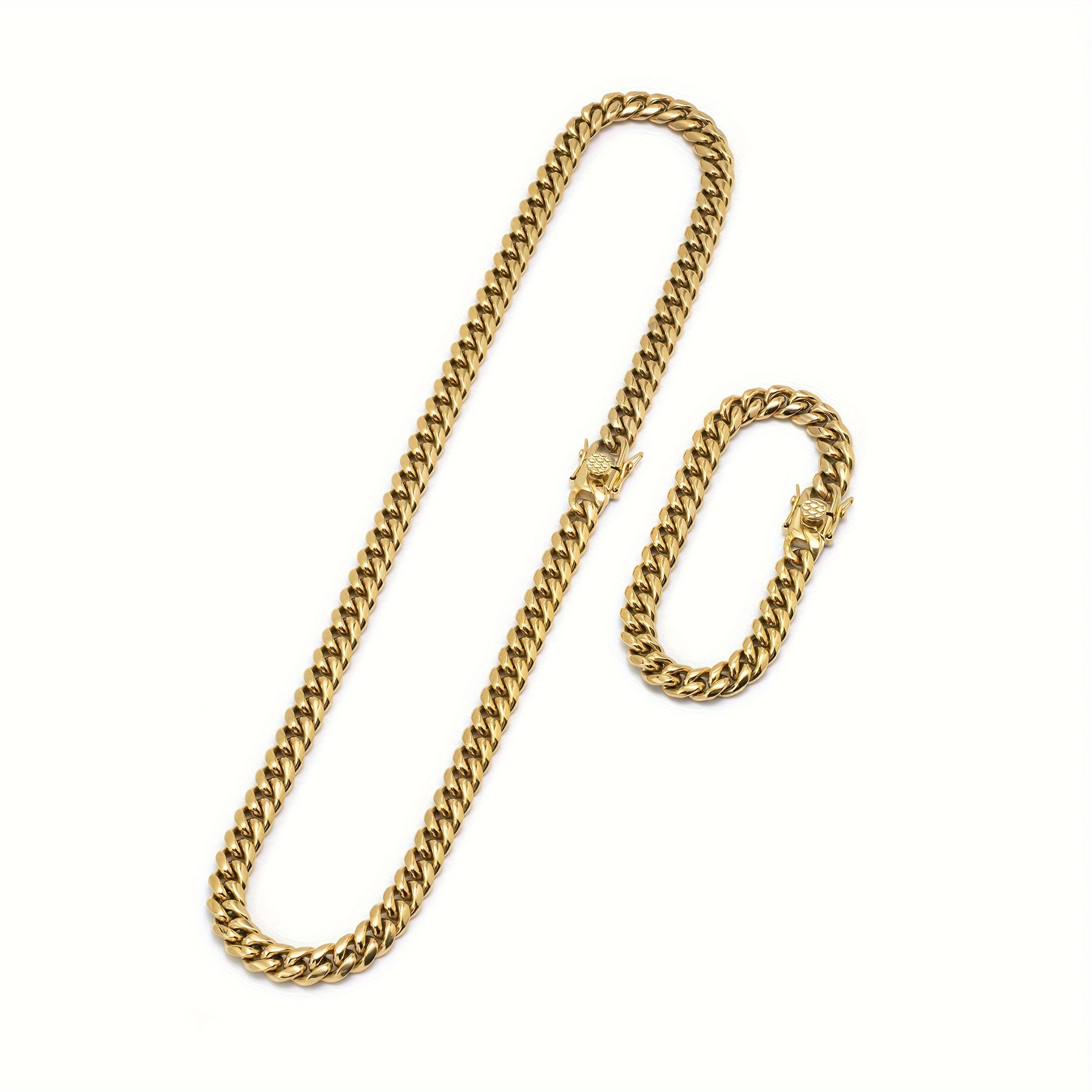 Get this unisex hip hop jewelry set made of hypoallergenic 304L stainless steel. The set includes a necklace and bracelet with a polished finish, perfect for both men and women.