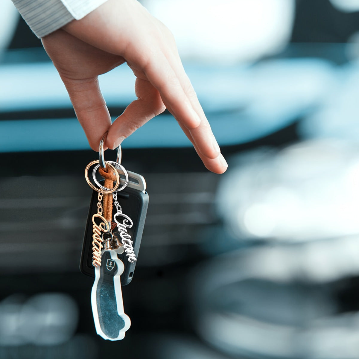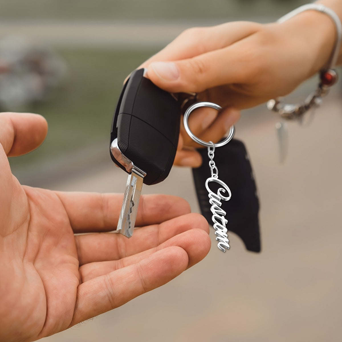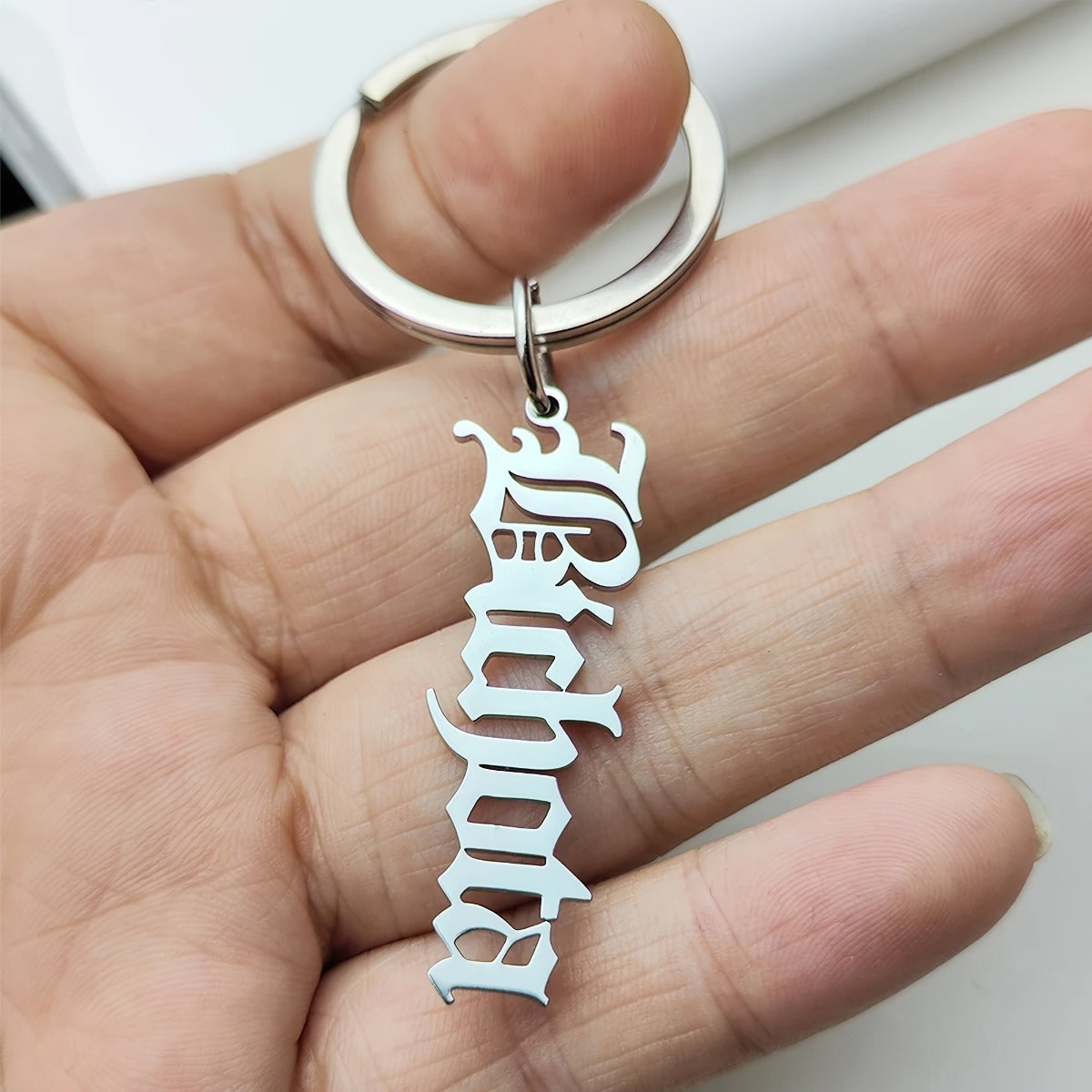 This personalized keychain is a perfect gift for men on their birthday. Made of stainless steel, it features a custom name and letter design.