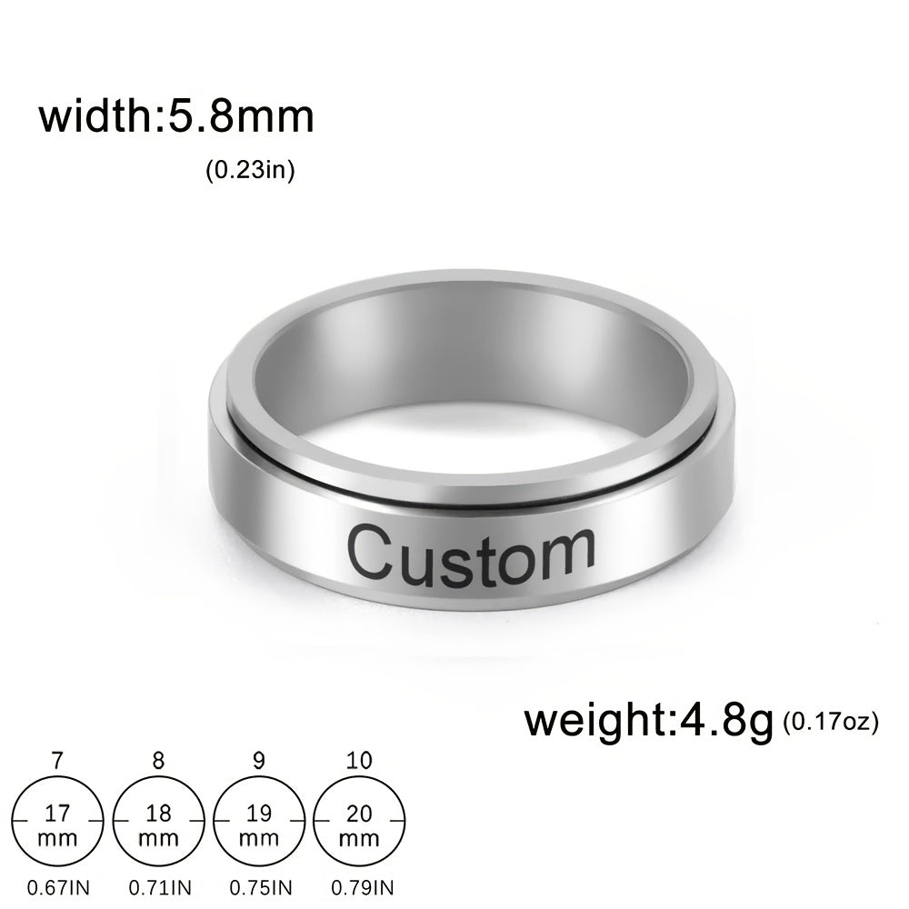 Get this personalized rotatable ring with custom name and date to reduce anxiety and irritability. Perfect for couples or as a casual accessory for men.