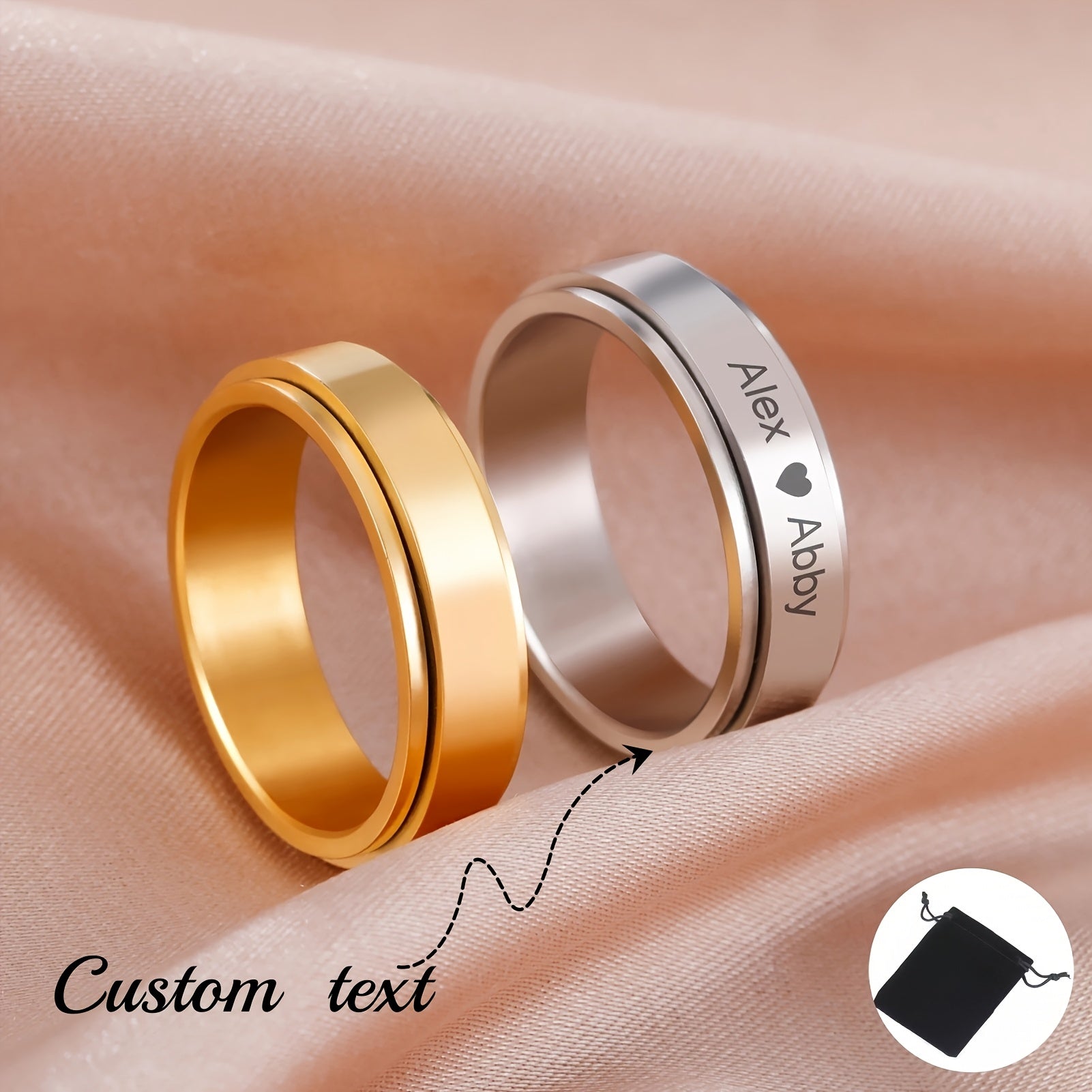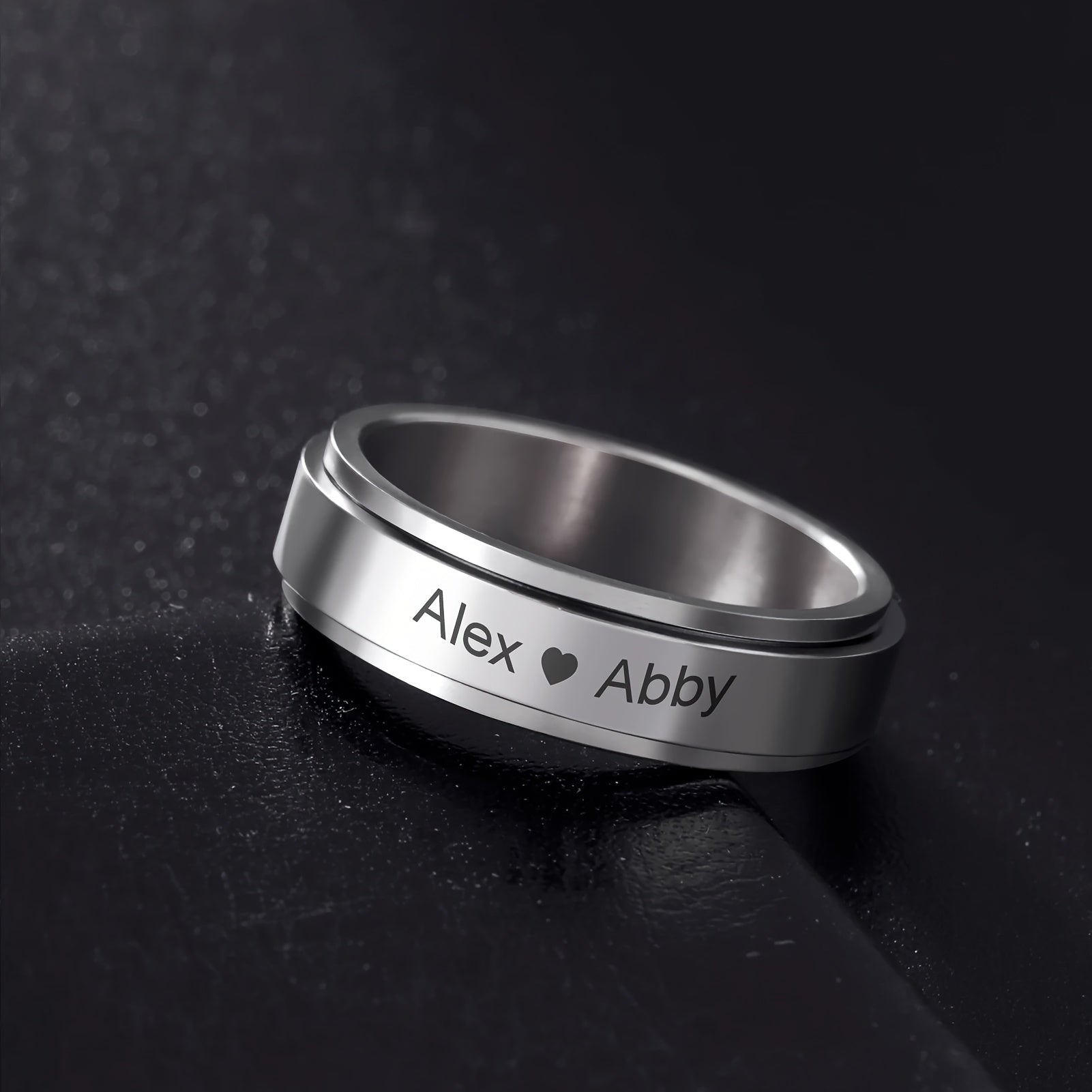 • Personalized rotatable ring with custom name and date