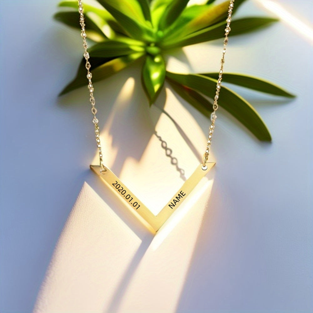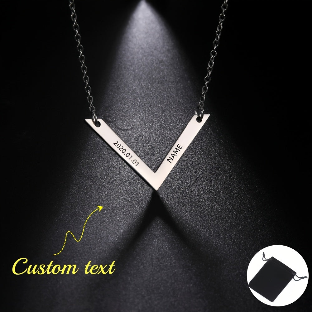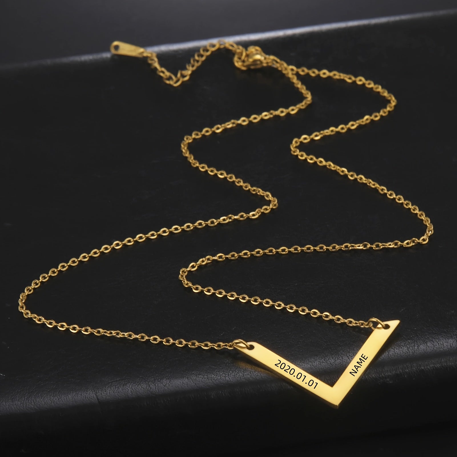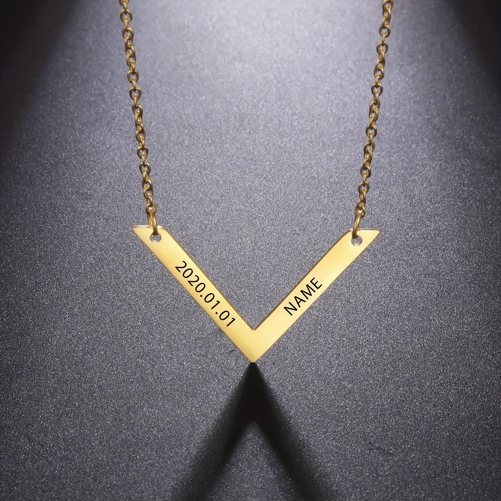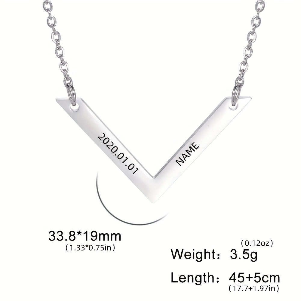 Get a personalized touch with The EUEAVAN V Shaped Necklace. Engrave names and dates in multiple areas on this stain-resistant necklace.