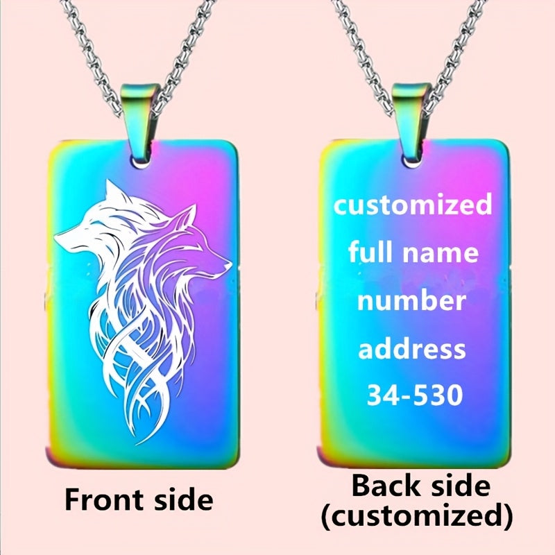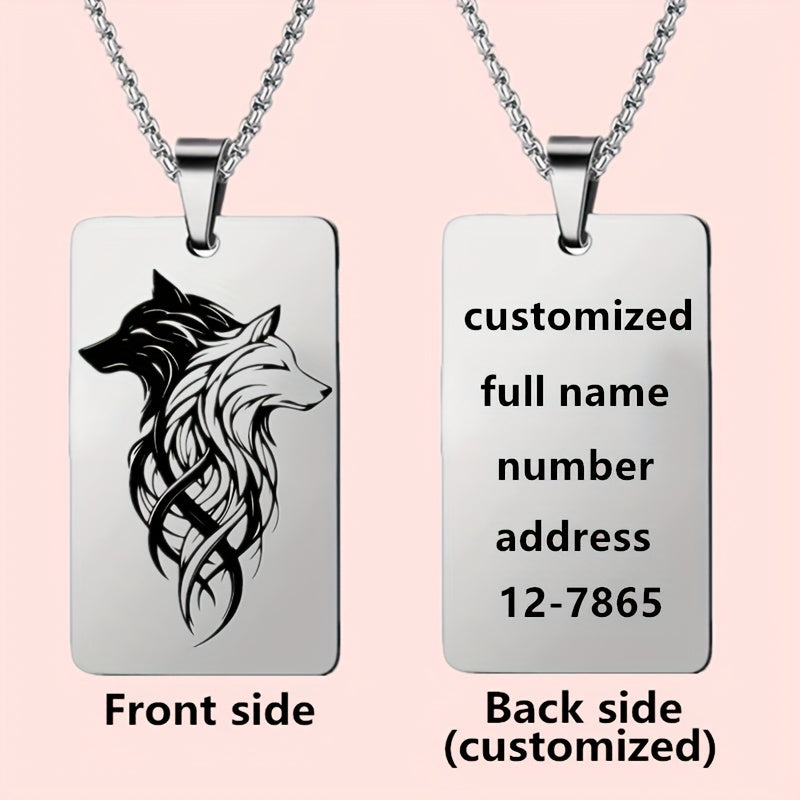 This double-headed wolf pendant necklace is made of high-quality 201 stainless steel, symbolizing strength and resilience. Personalize it with an engraving for a unique touch. A great gift for someone who embodies the spirit of the wolf.