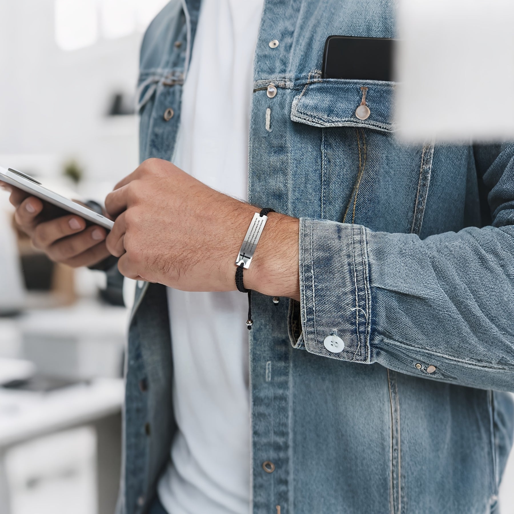 This stainless steel couples bracelet features a vintage minimalist design that can be engraved with personalized messages. Perfect for expressing love and commitment.