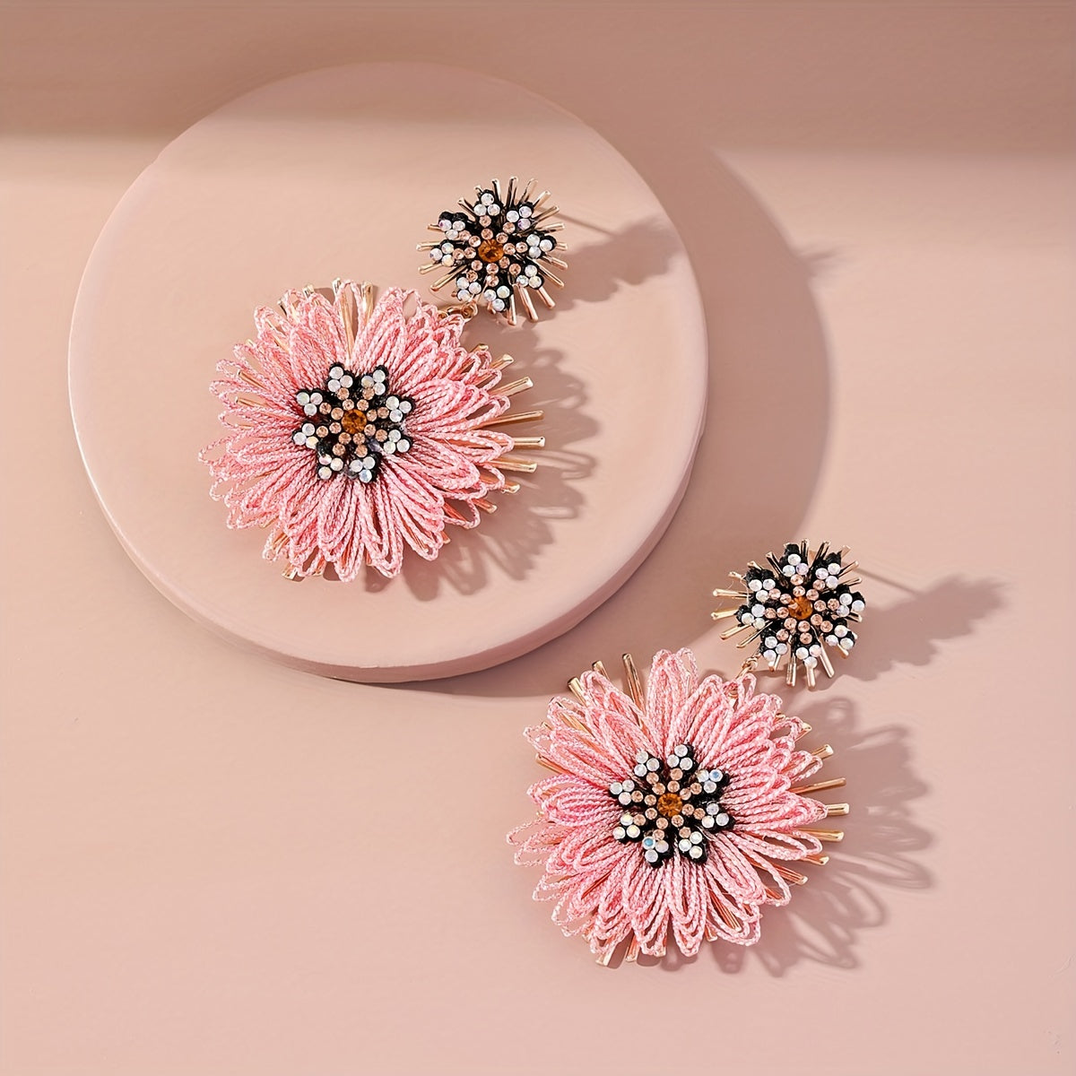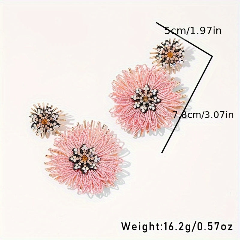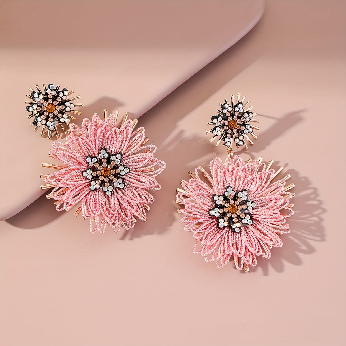 Dainty Flower Paved Zirconia Dangle Earrings for Daily Outfits & Parties