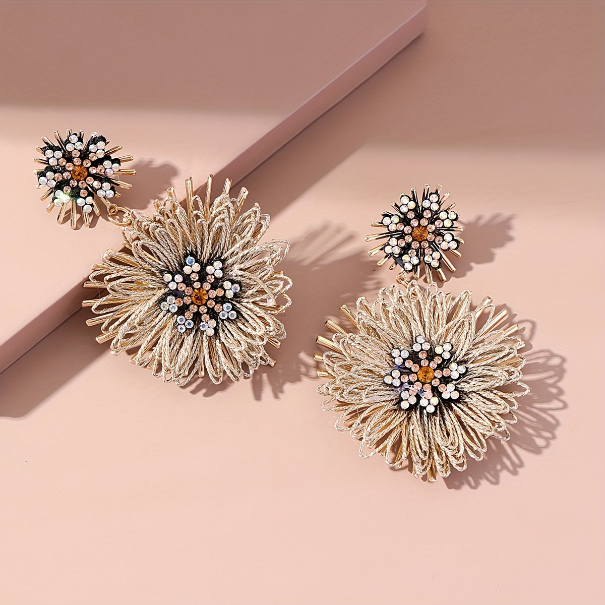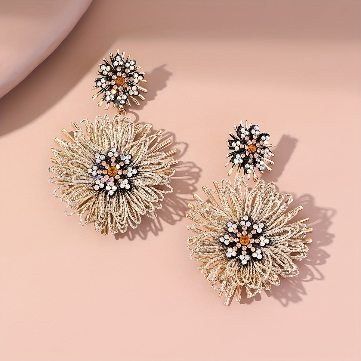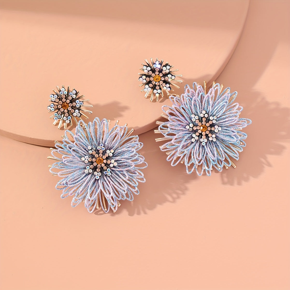 Dainty Flower Paved Zirconia Dangle Earrings for Daily Outfits & Parties
