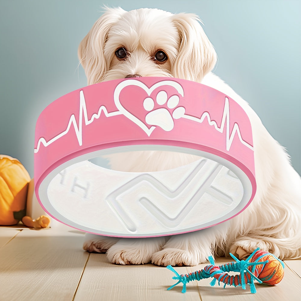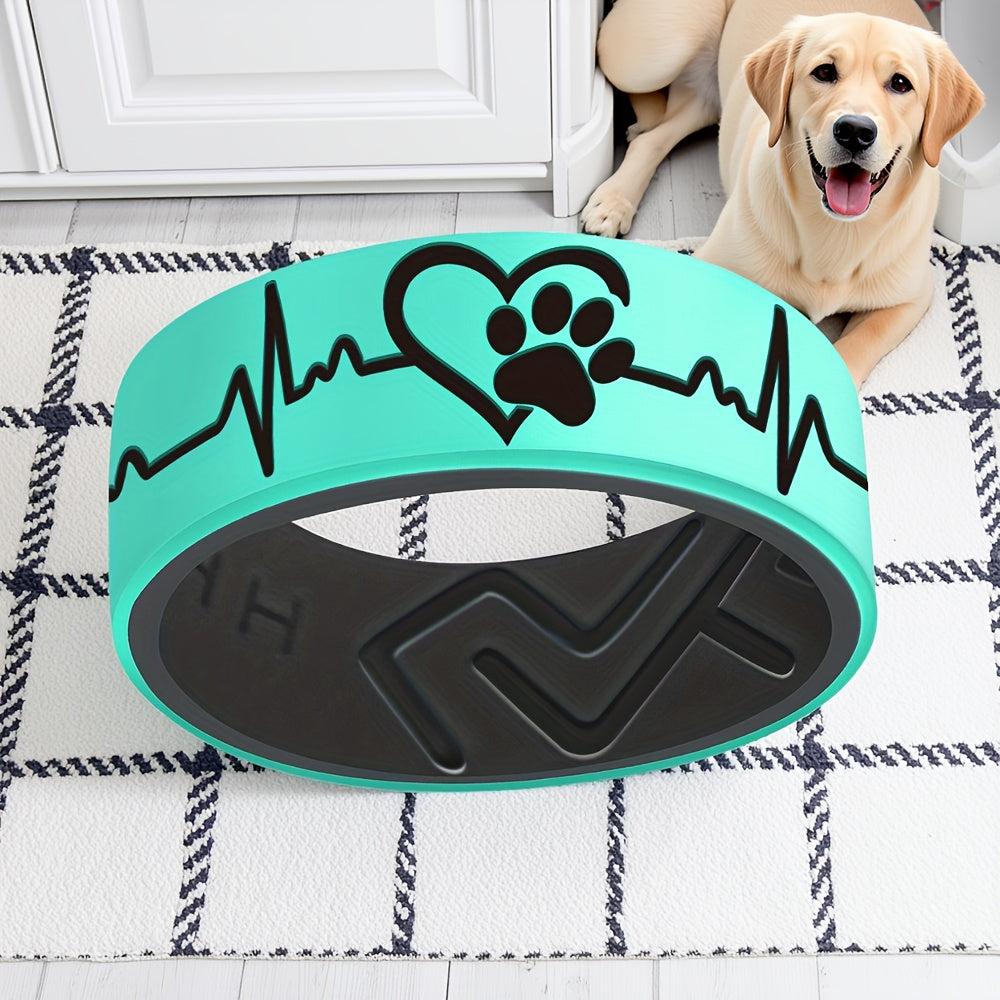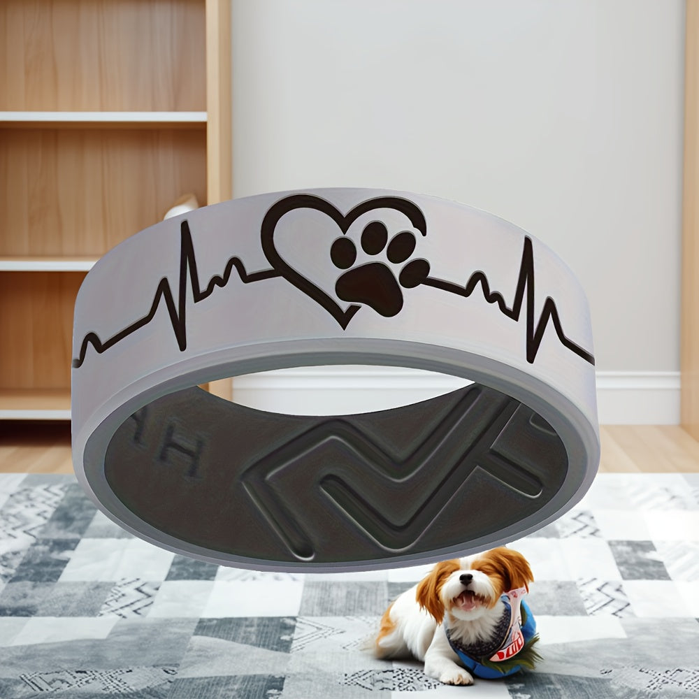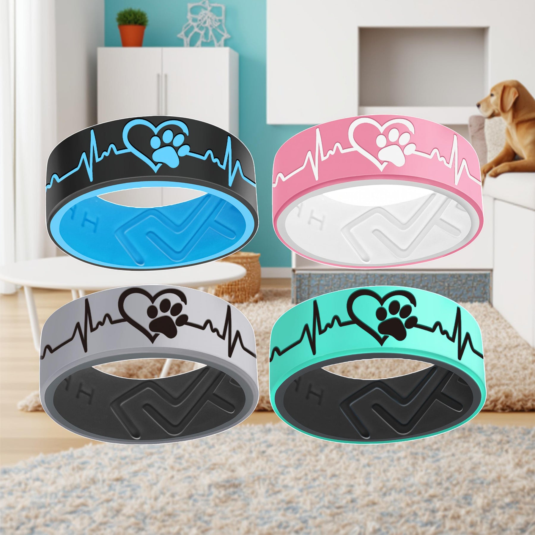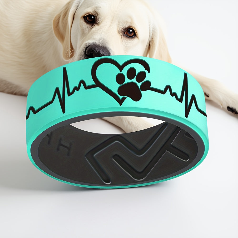 Express your love with this romantic silicone band ring for wedding or engagement. Comfort fit design with a cute dog paw and heart beat pattern.