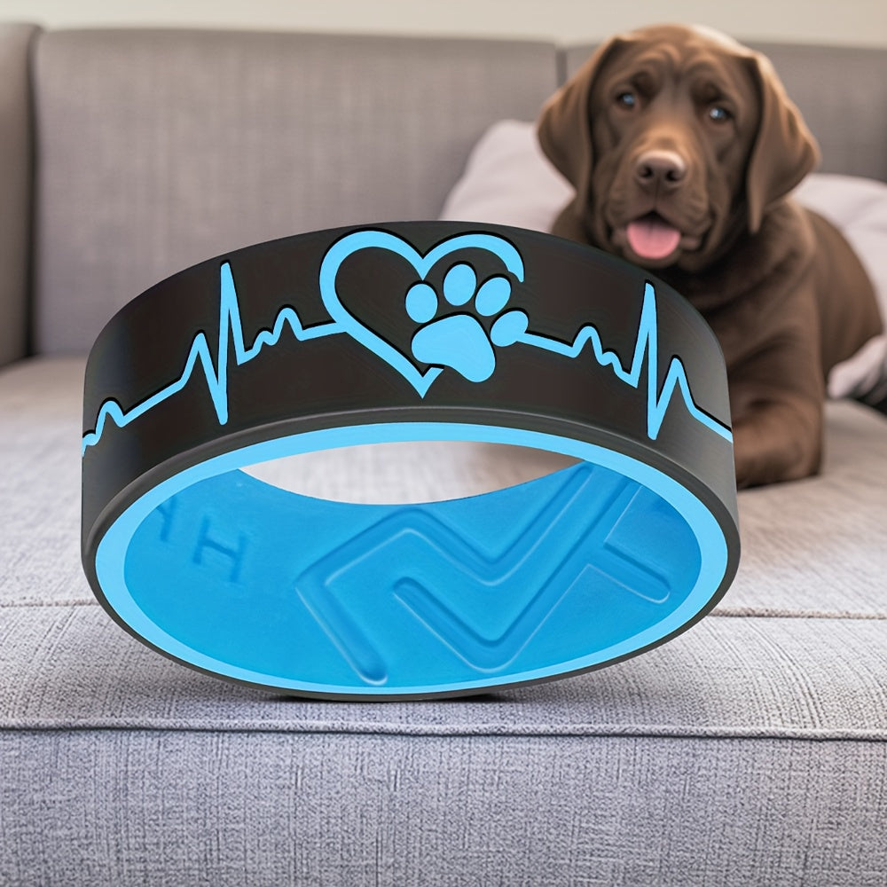 Dog Paw Heartbeat Love Heart Silicone Couple Ring 8mm