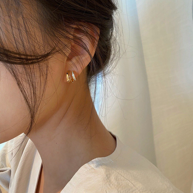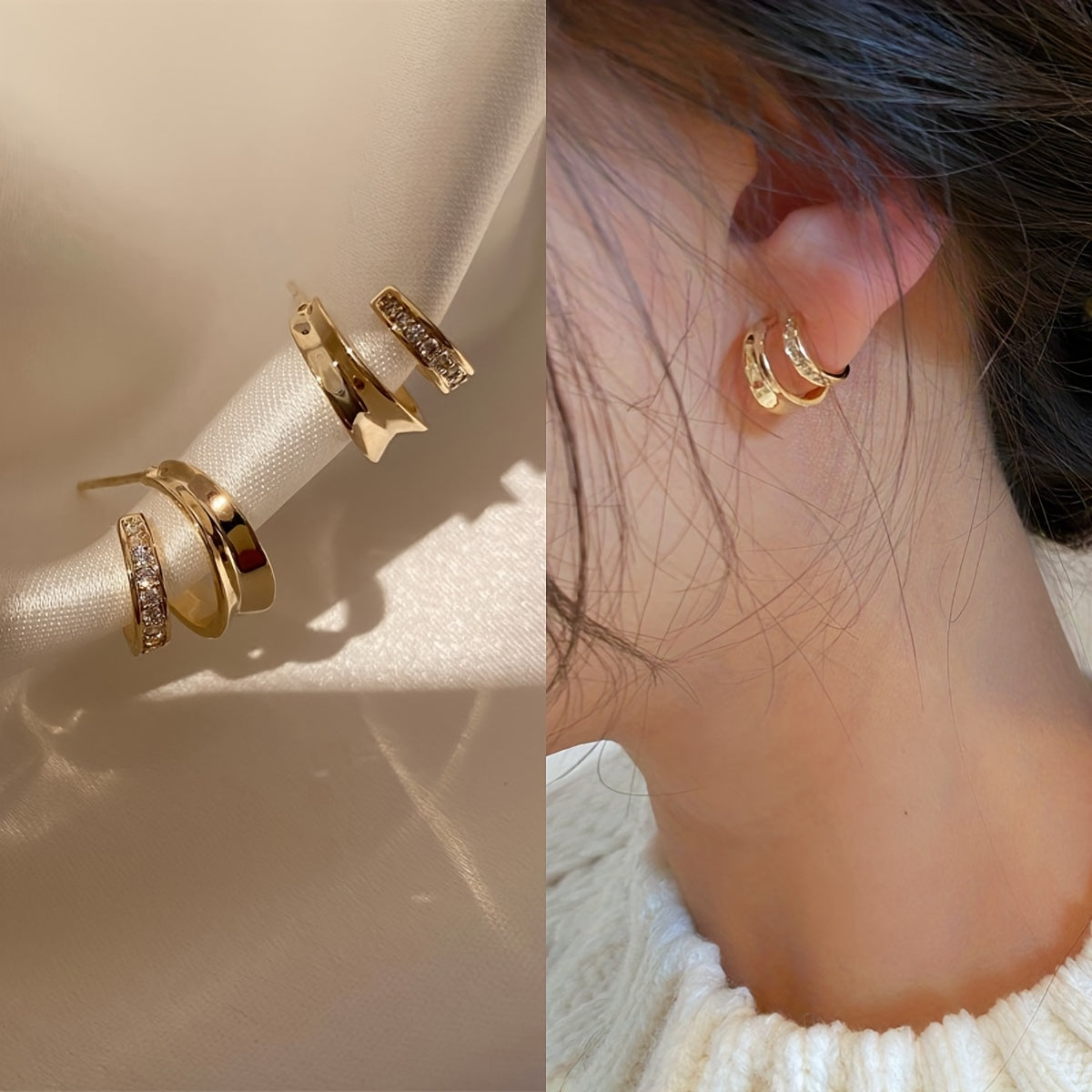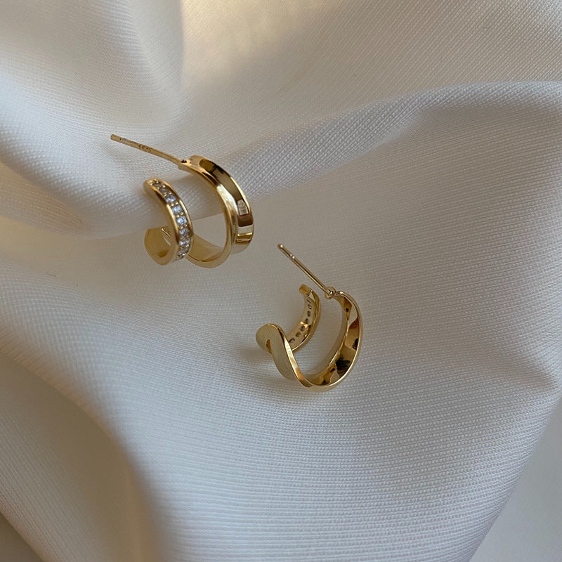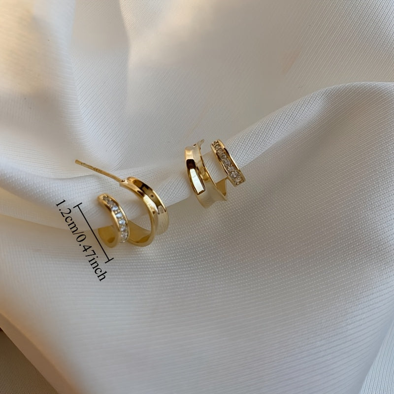 Double Layer C Shaped Rhinestone Stud Earrings - Perfect Gift