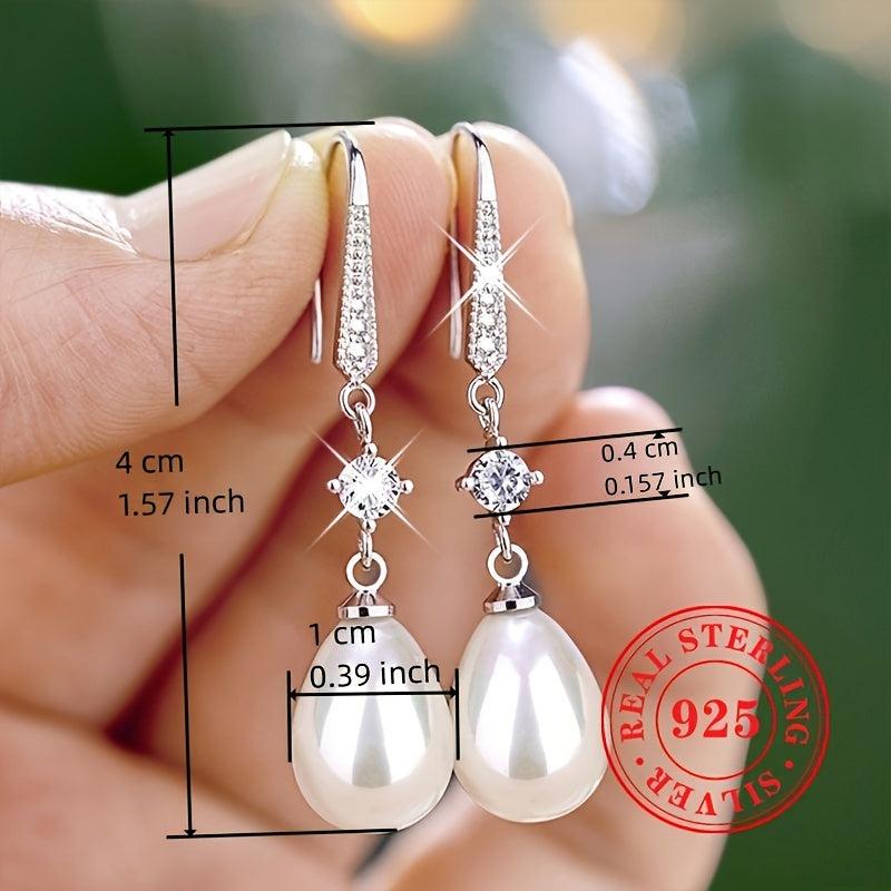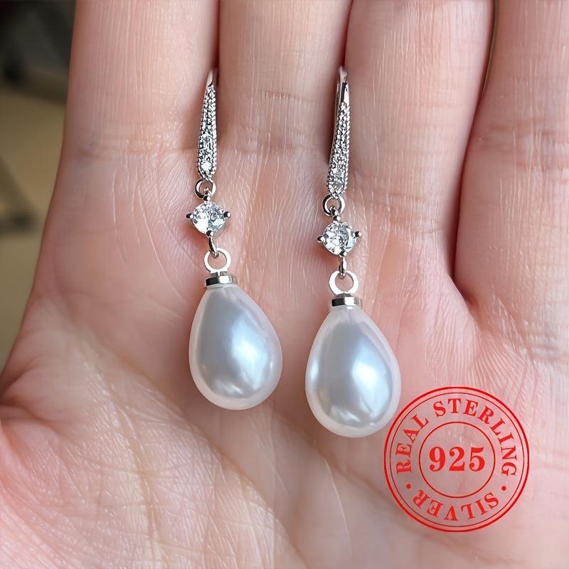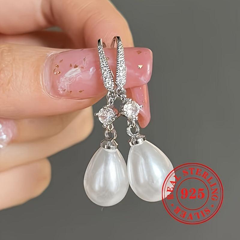Drop Earrings Teardrop Shape Faux S925 Sterling Silver Women's Jewelry