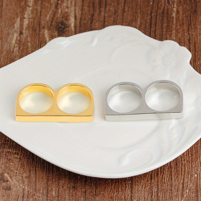 This stylish alloy accessory features double rings with a dimpled glasses design. Ideal for DIY crafts, daily wear, and garden decorations.