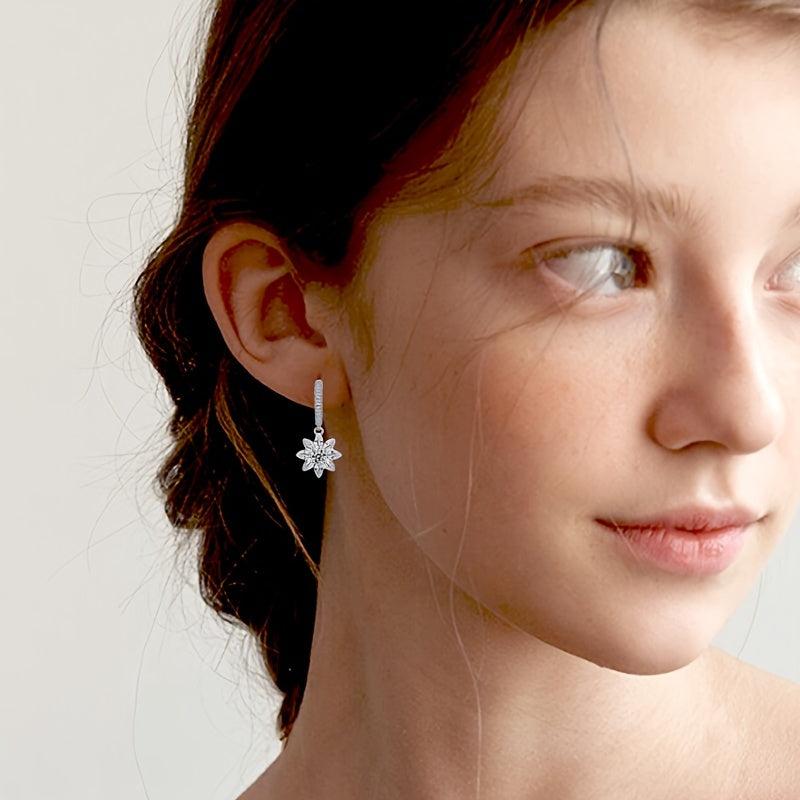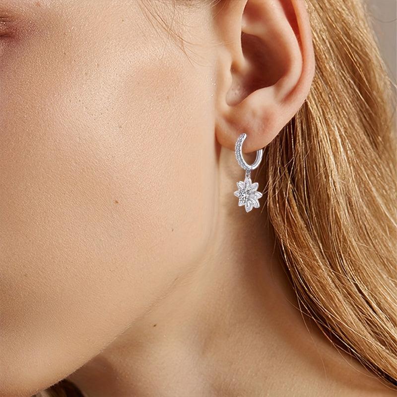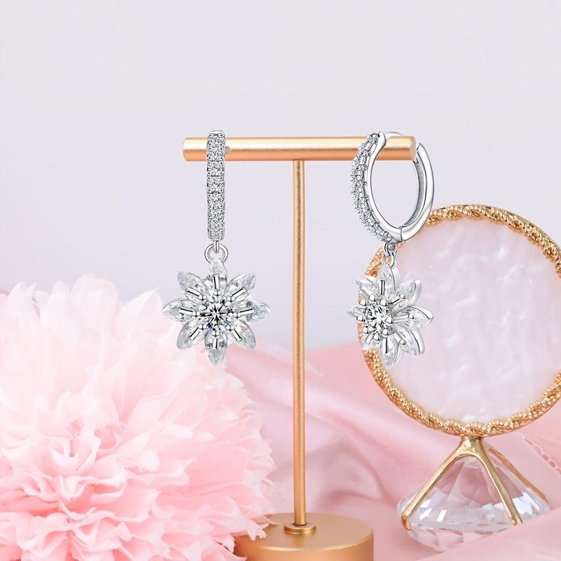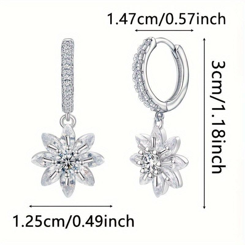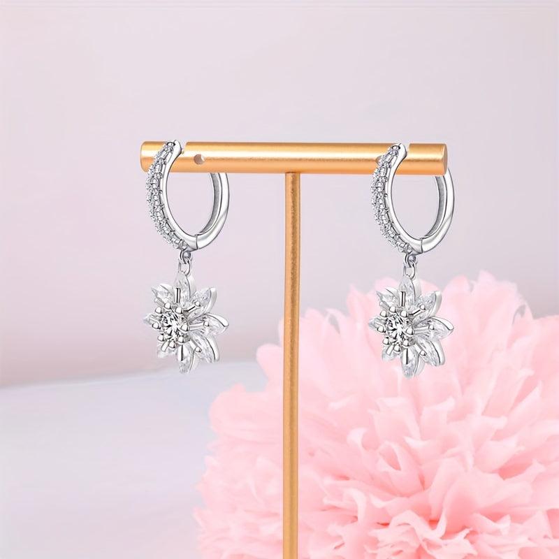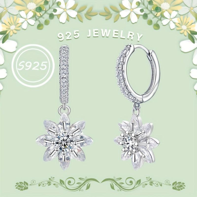 Gorgeous S925 silver earrings with cubic Zirconia flower pendants, ideal for birthday parties and weddings.