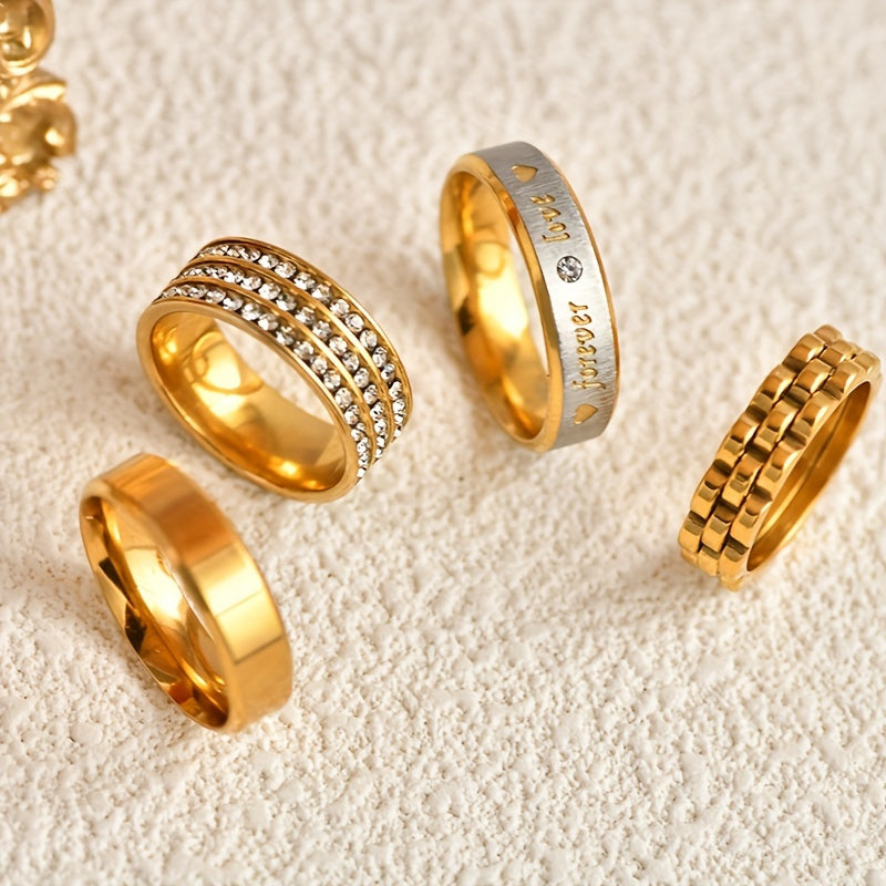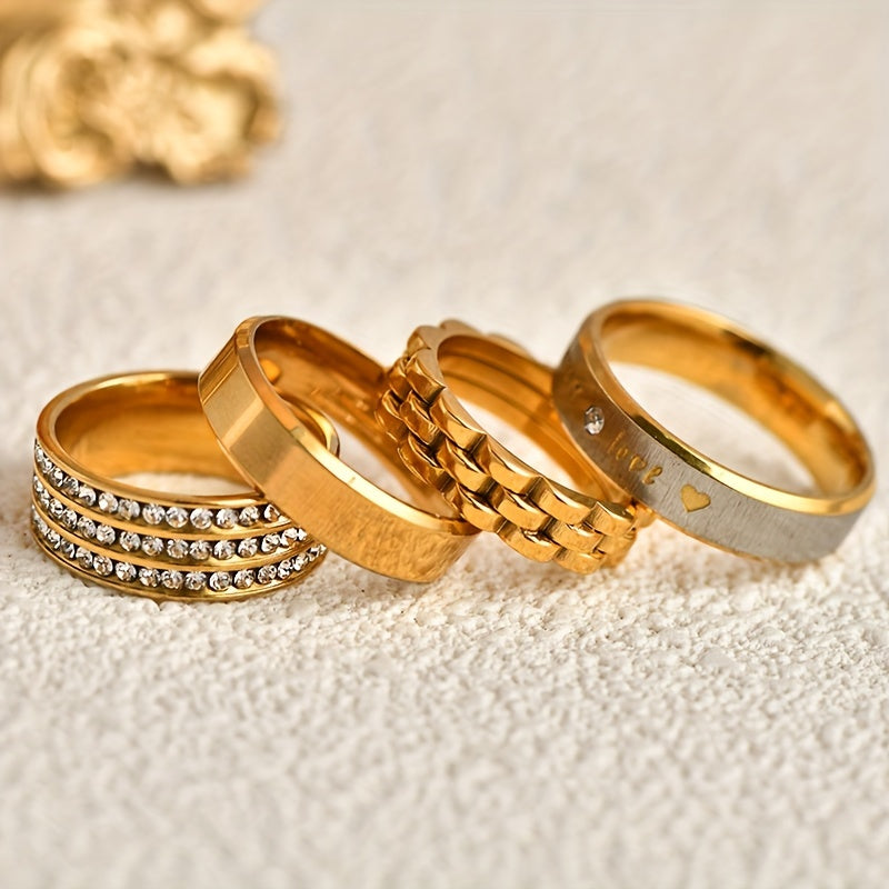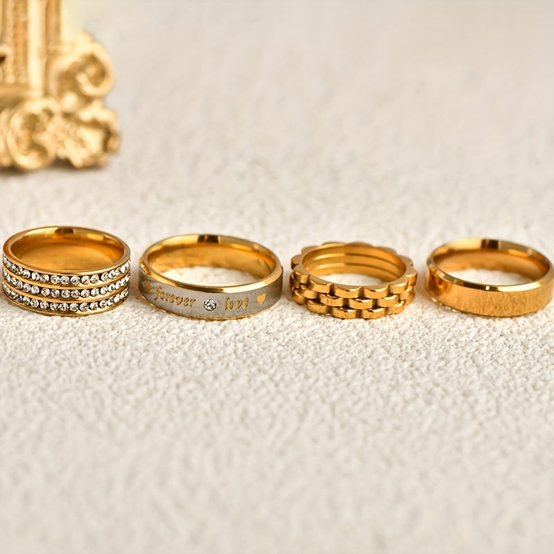 This set includes 4 romantic couple rings crafted from stainless steel with rhinestone accents. The combination style jewelry is perfect for expressing your love and commitment.