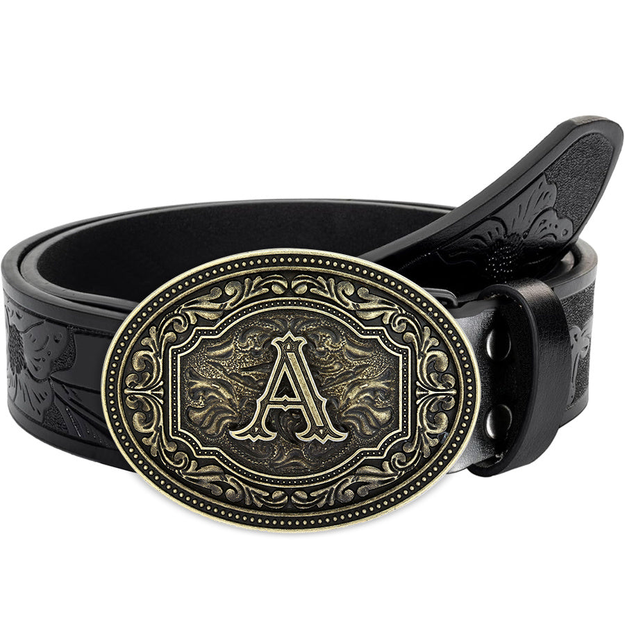 This western style belt features embossed faux leather with alloy buckle. It is perfect for jeans and showcases vintage cross, letter floral, and bovine head motifs.