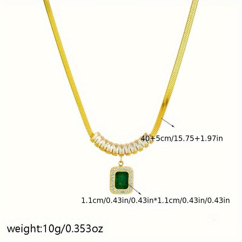 Emerald Green Square Zirconia Pendant Necklace Stainless Steel