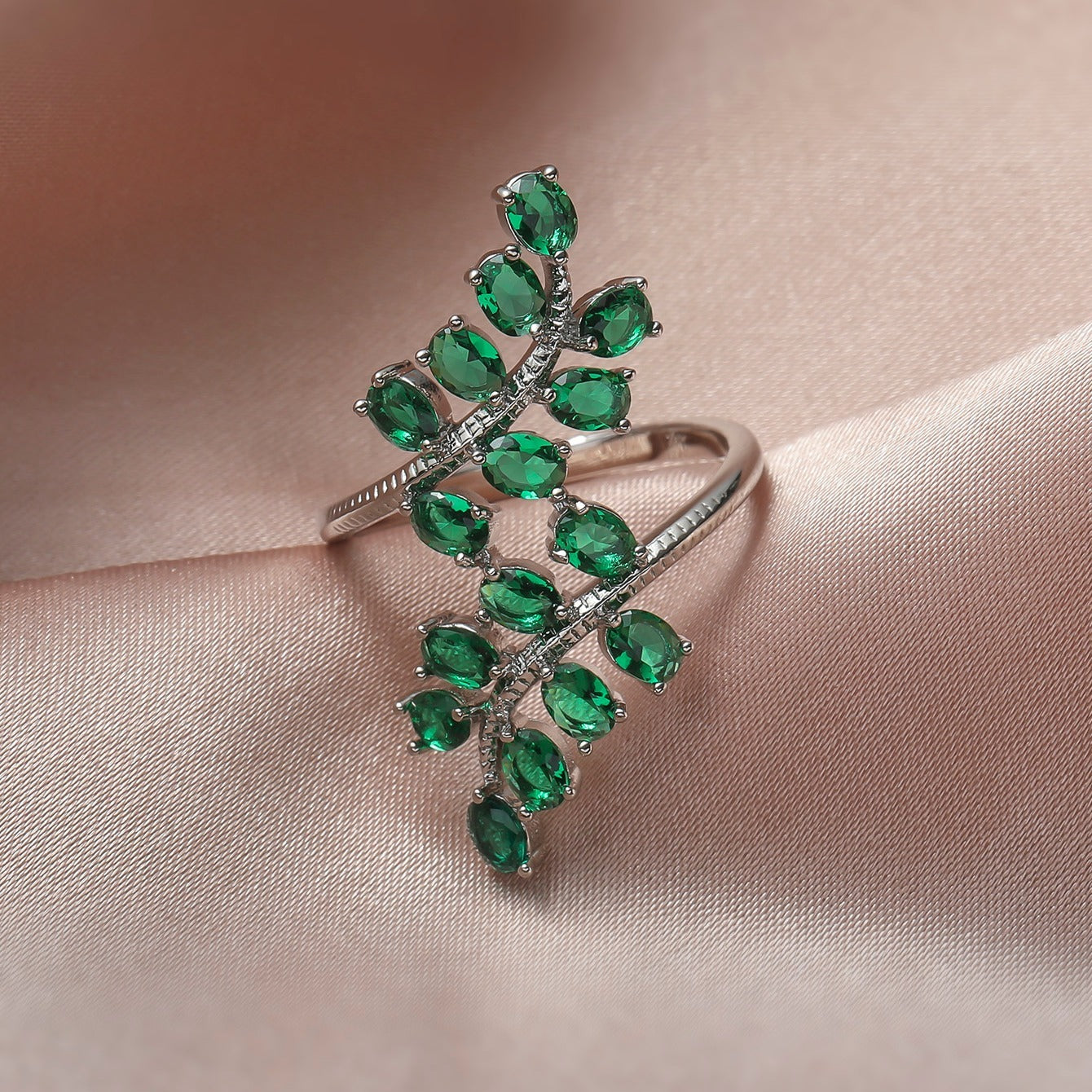 • Emerald green zircon leaf shape design