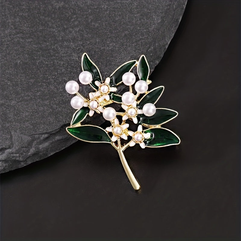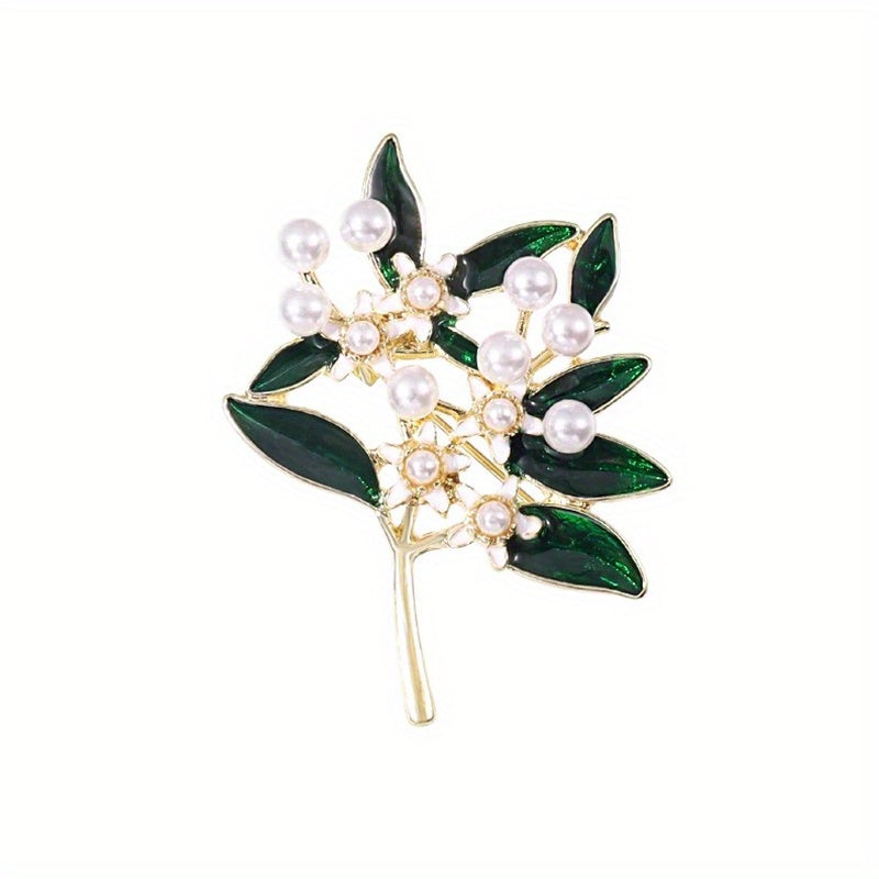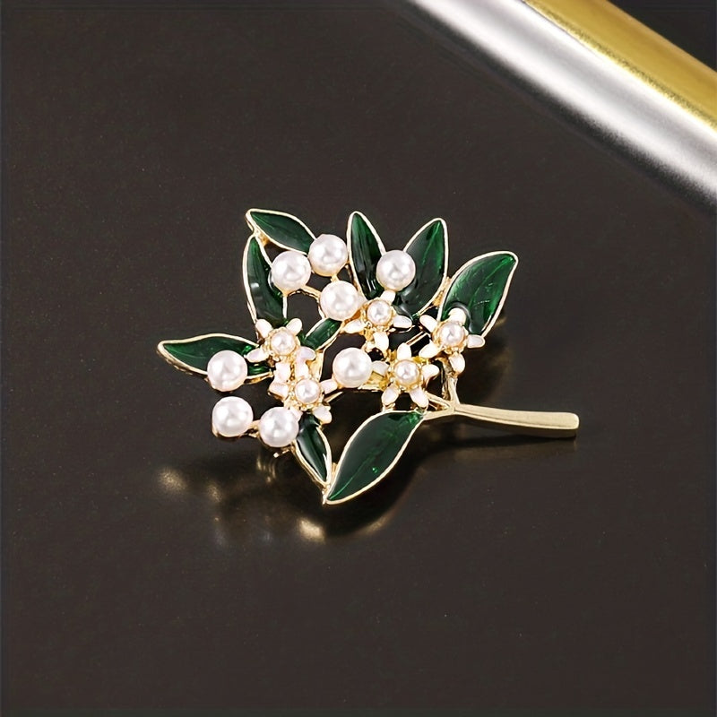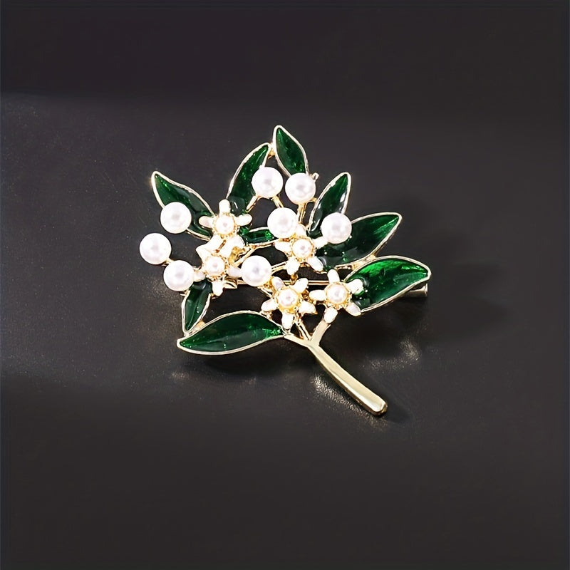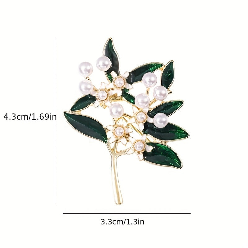 Enhance your look with this elegant brooch featuring a faux pearl corsage and beautifully painted enamel flower. Perfect for accessorizing any outfit.