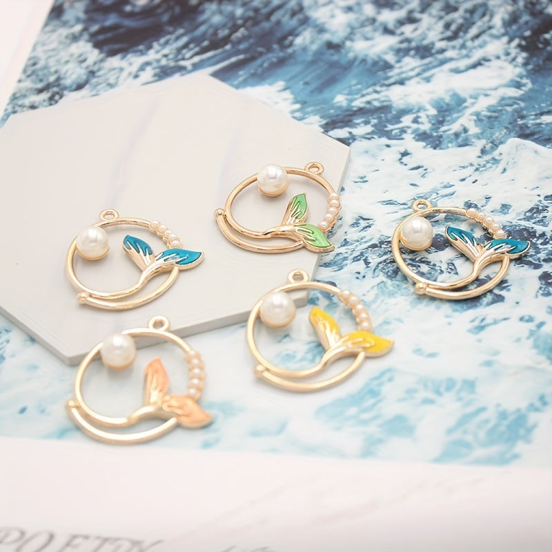 This beautiful enamel plated pearl golden mermaid tail charm pendant can be used to create stunning earrings, bracelets, necklaces, and other DIY jewelry pieces.