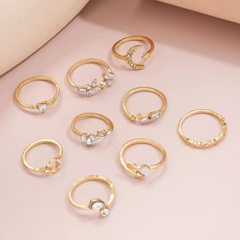 • 9 rings comb with heart, butterfly, star, and moon rhinestones