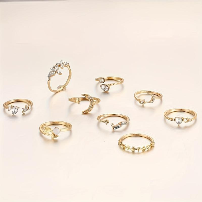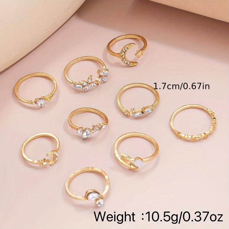 This stunning comb features 9 rings adorned with heart, butterfly, star, and moon rhinestones, perfect for adding a touch of glamour to your hairstyle.