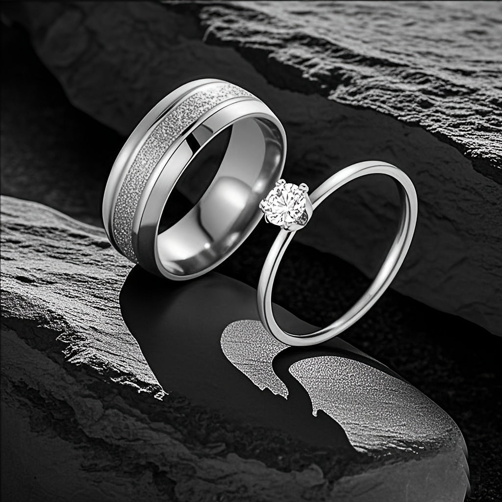 European American Stainless Steel Couple Rings