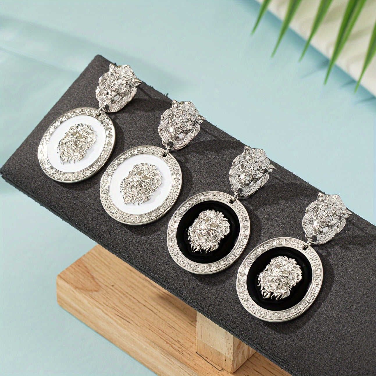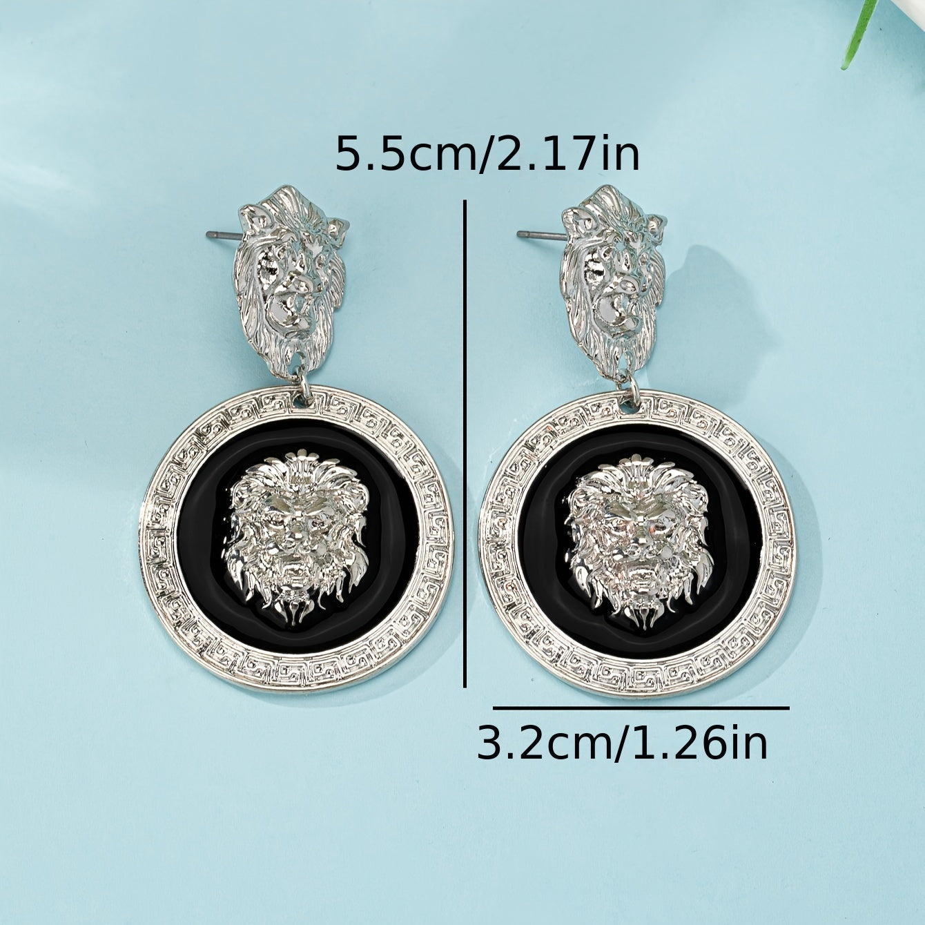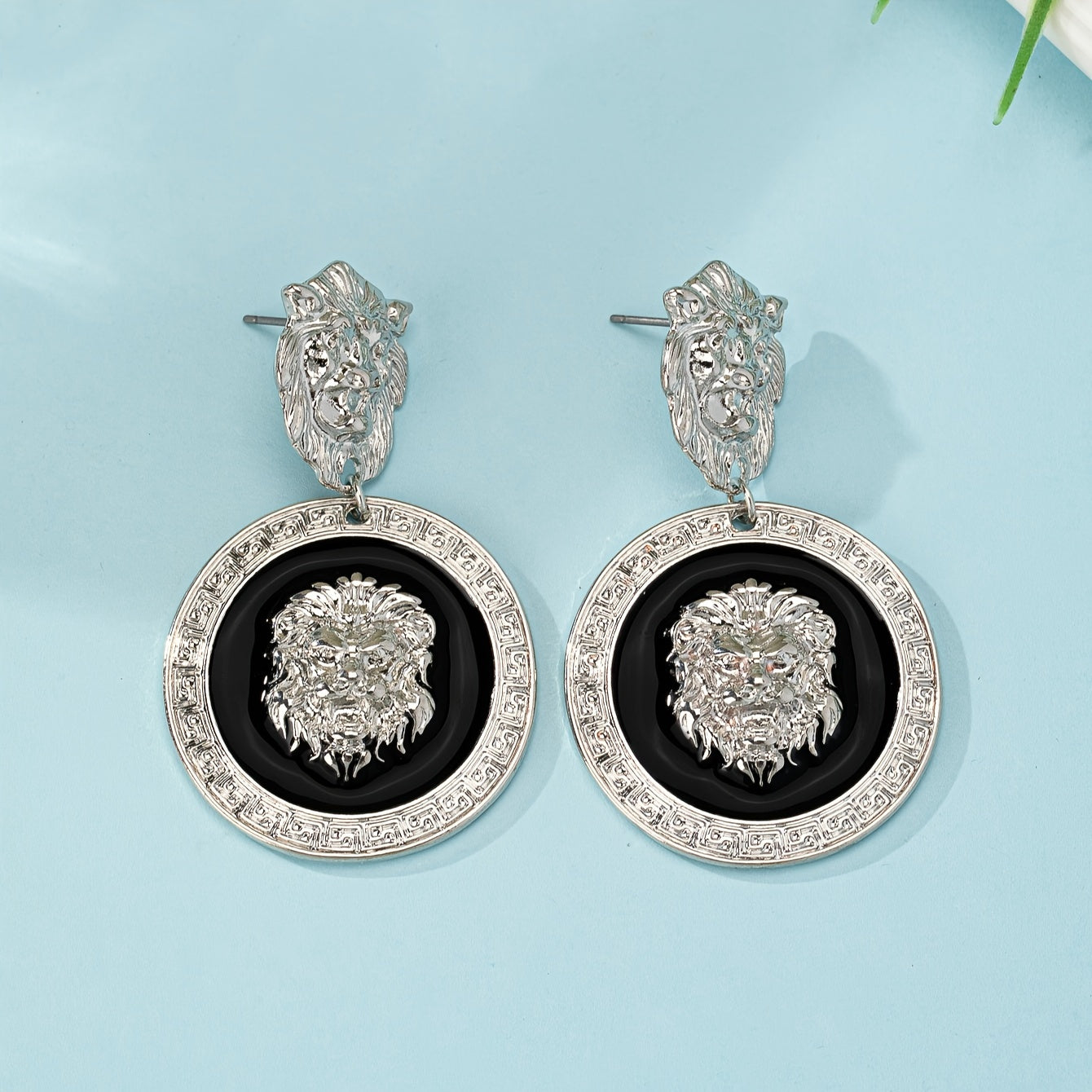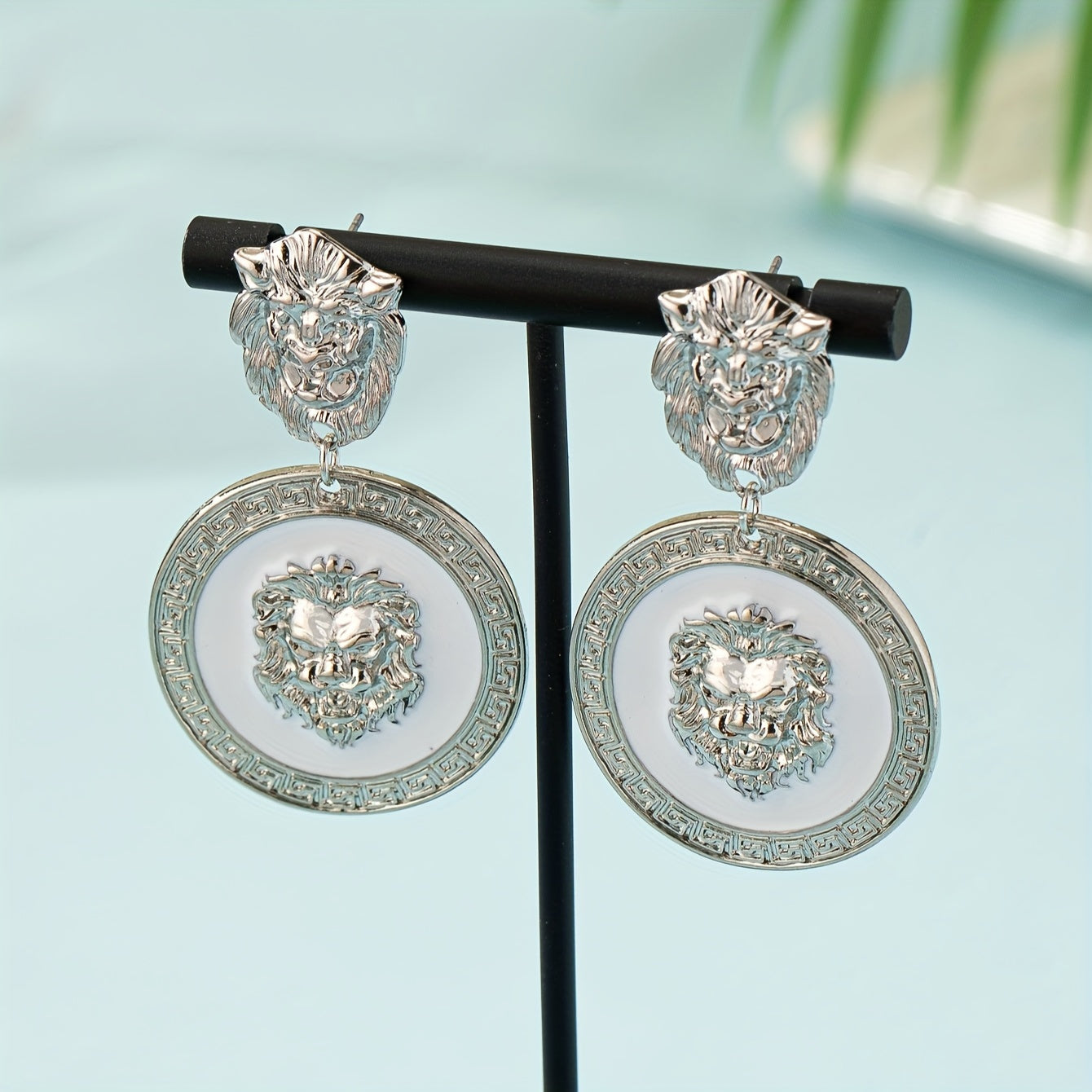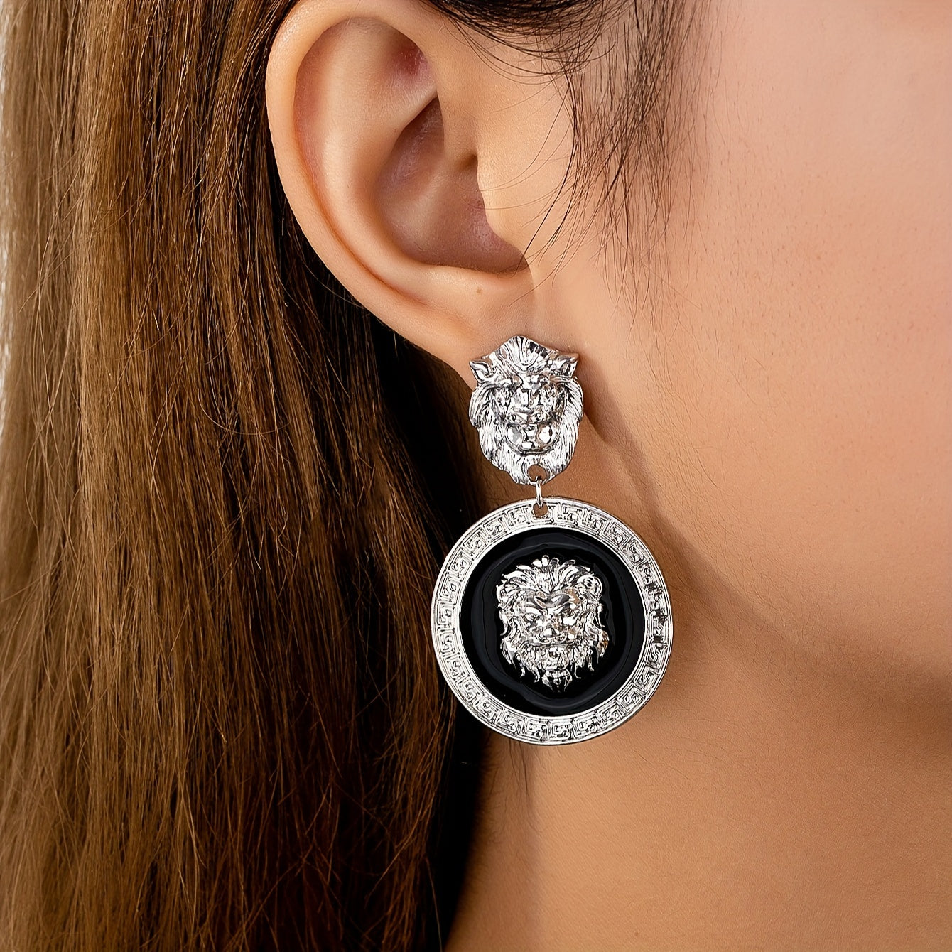 Add a touch of vintage charm with these geometric totem lion pattern earrings. Stand out with this unique accessory.