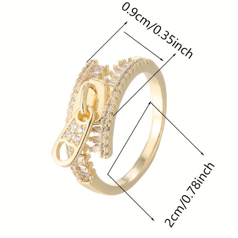 Elegant and trendy zipper ring with synthetic cubic zirconia accents. Made from copper with unique plating. Perfect for daily wear and gifting occasions.