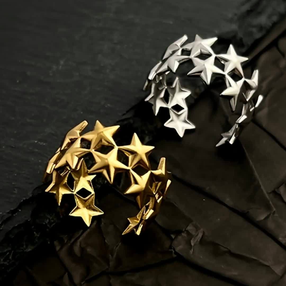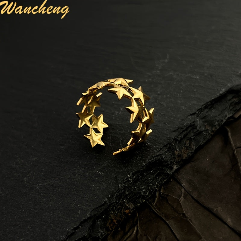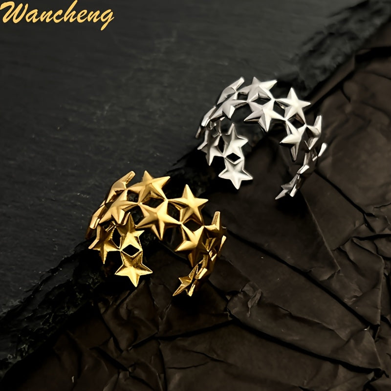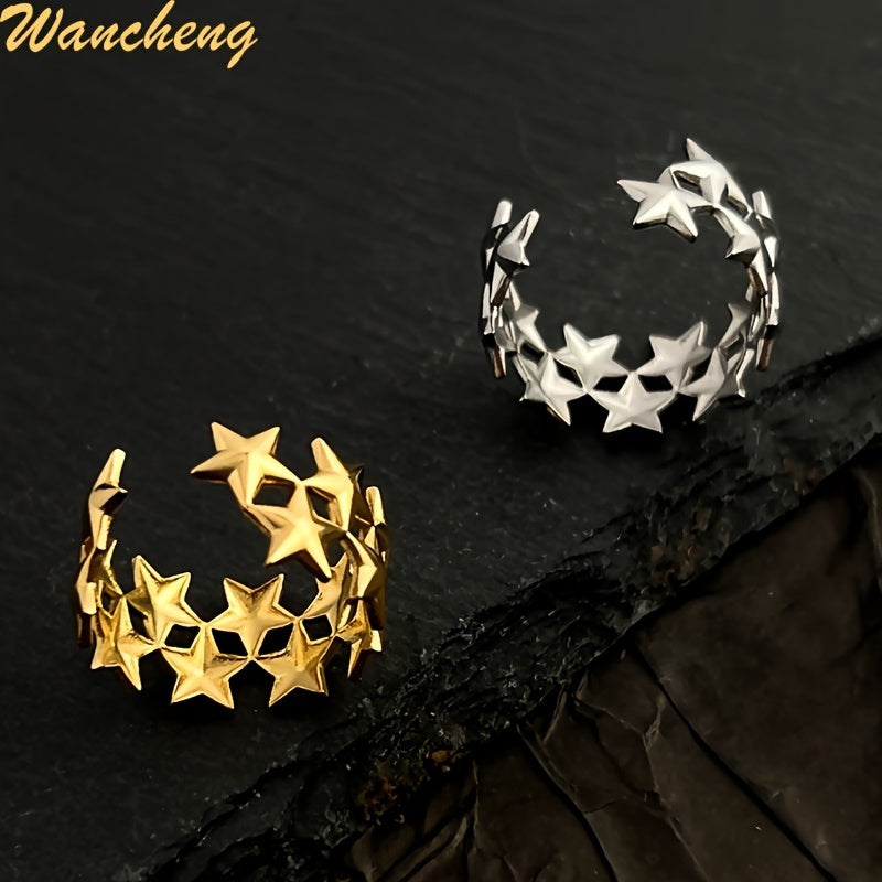 This stylish hip hop ring features a five pointed star design, perfect for adding a touch of edgy flair to any outfit.