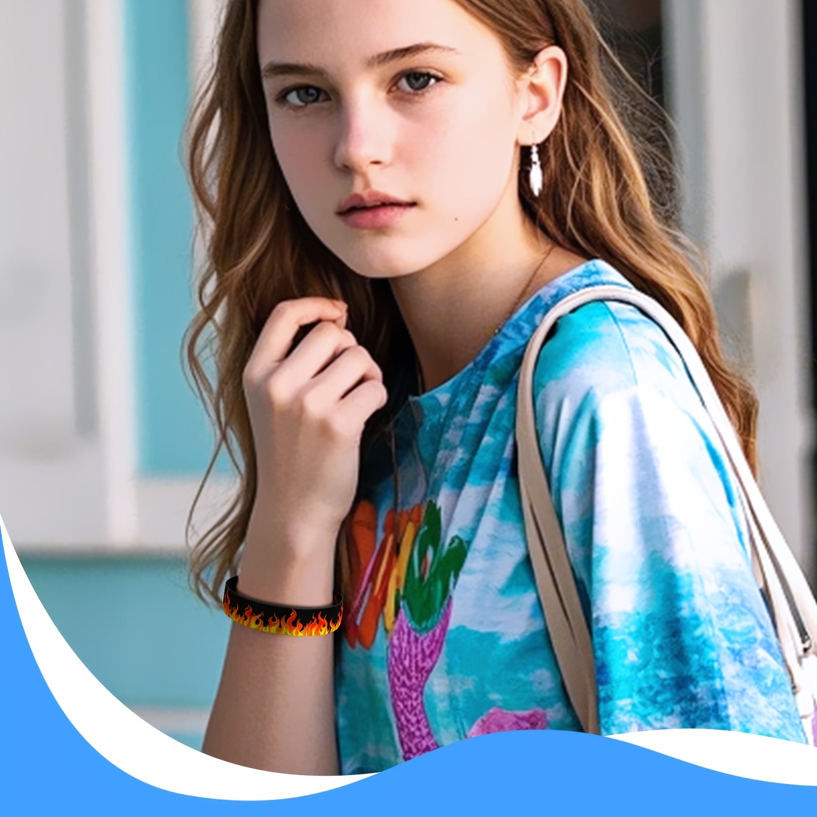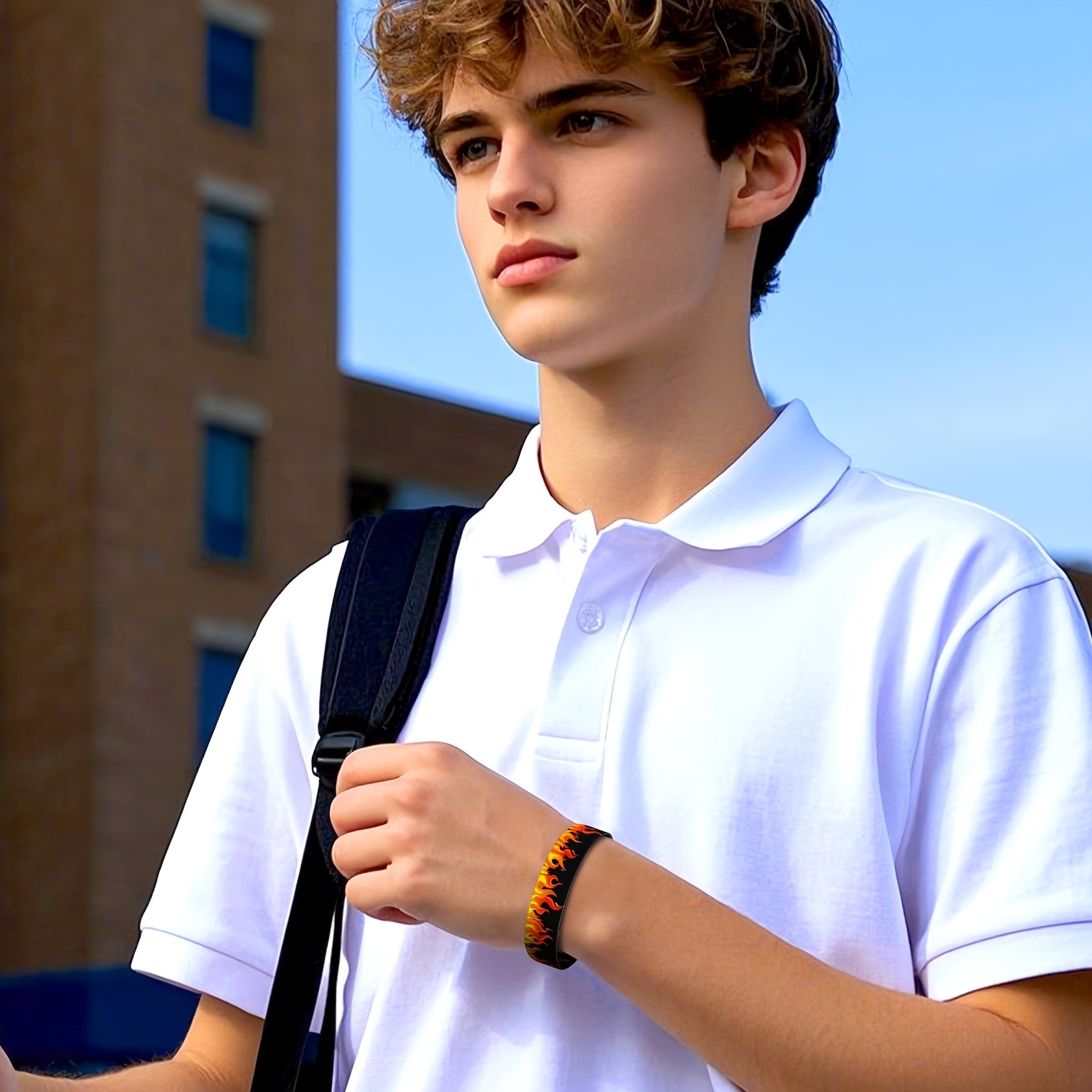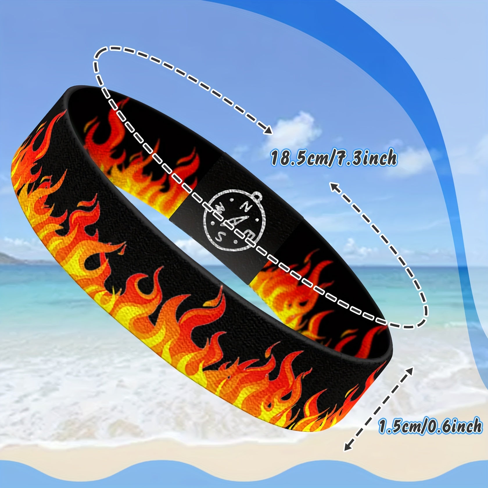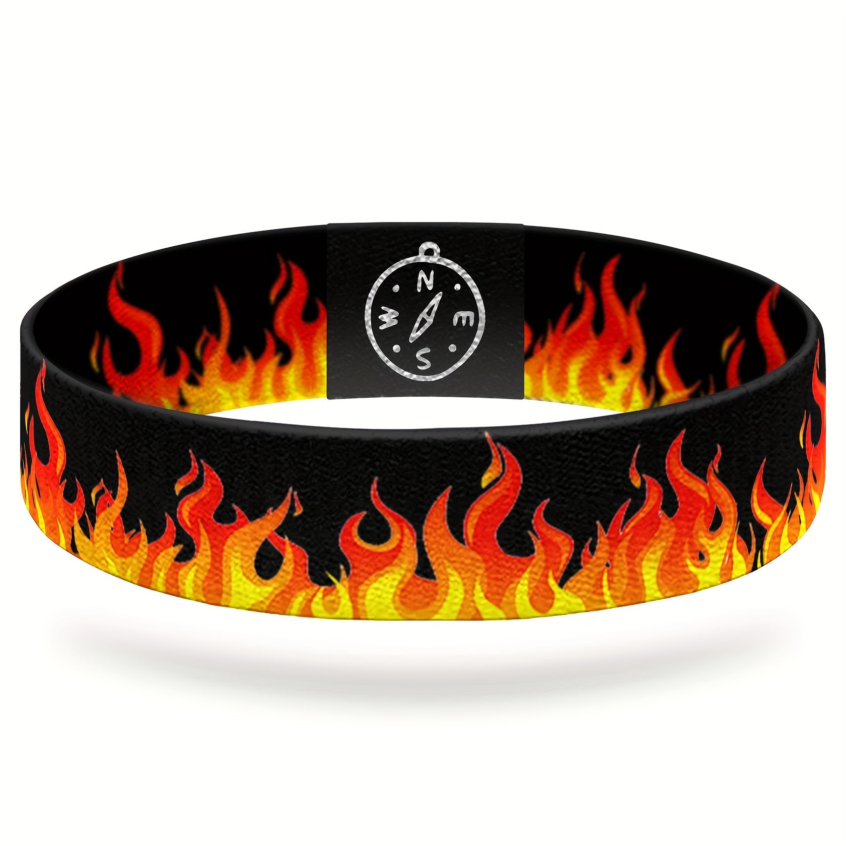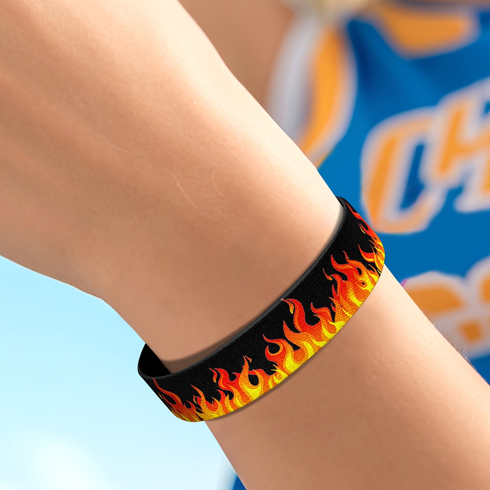 This vibrant flame elastic bangle bracelet features a red and orange fire motif that is perfect for women and men. Ideal for casual sporty wear, it makes a great gift for holidays or birthdays.