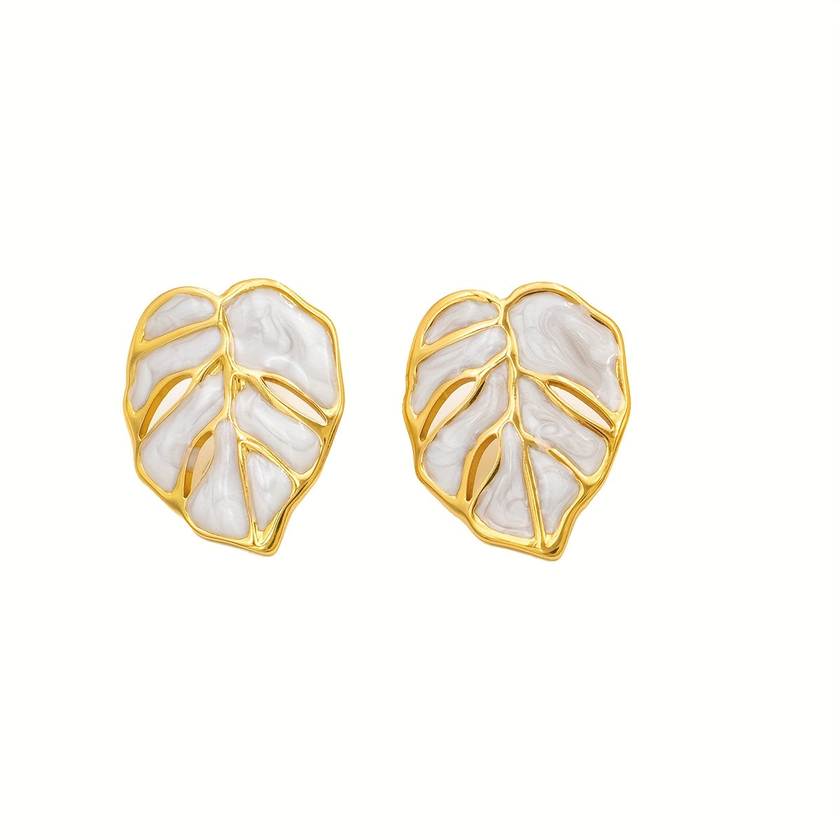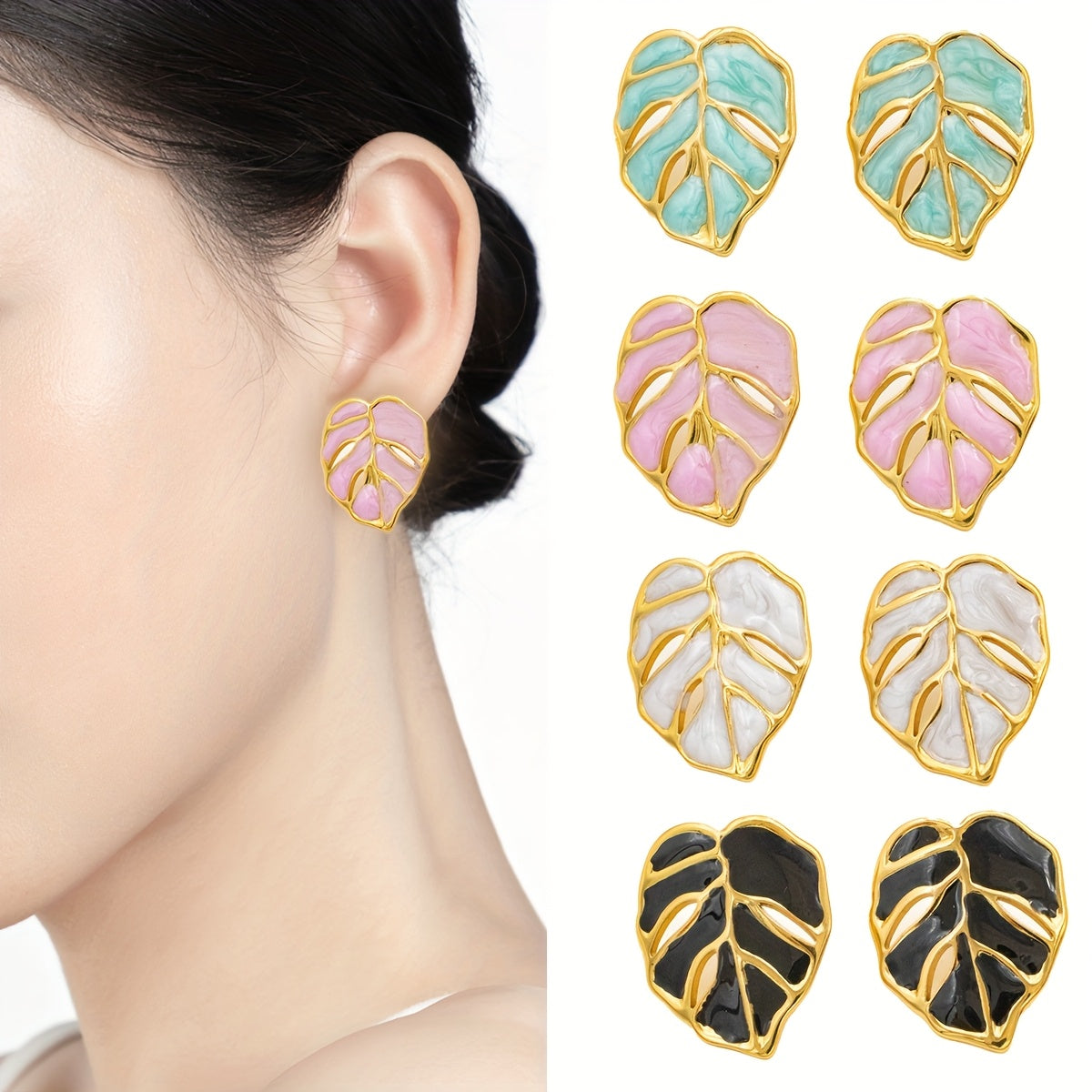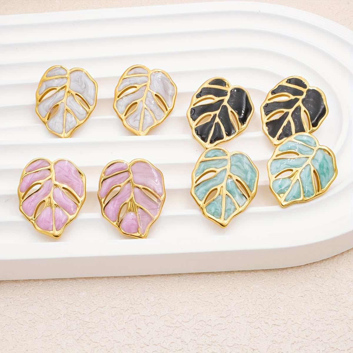 These vintage-inspired dangle earrings feature a French maple leaf design in stainless steel with enamel detailing. Perfect for daily wear and adding a touch of nature-inspired elegance to your outfit.