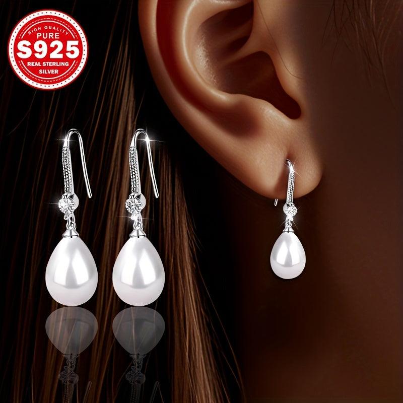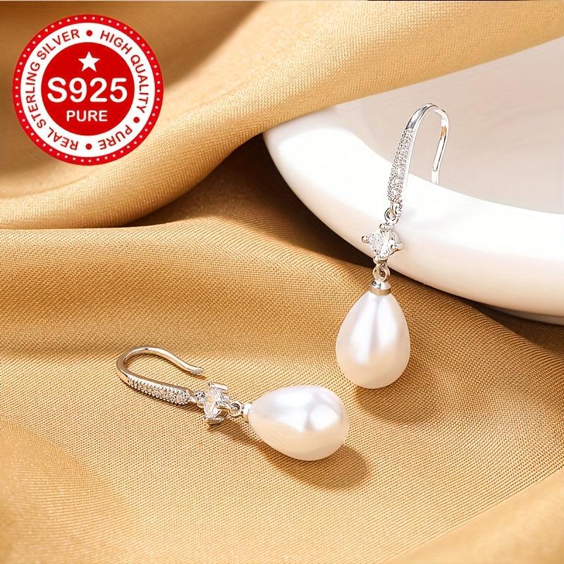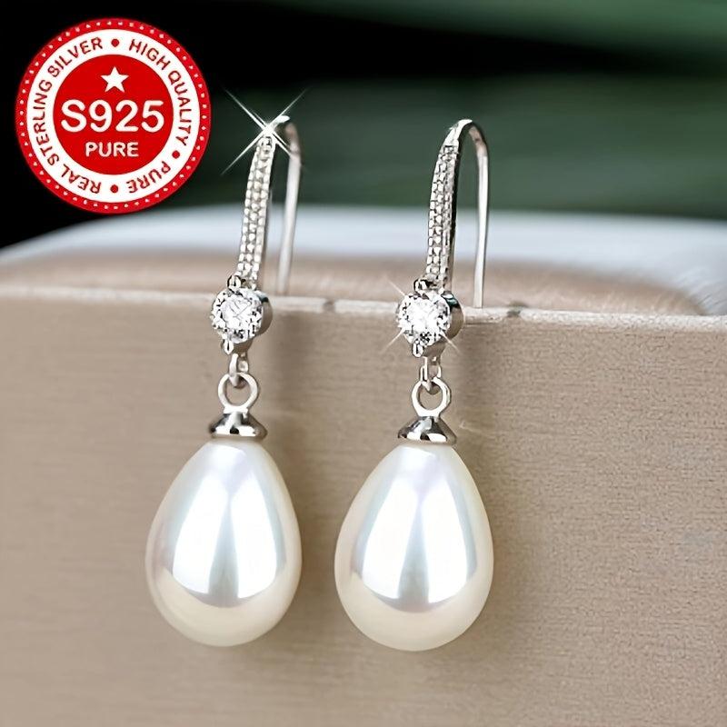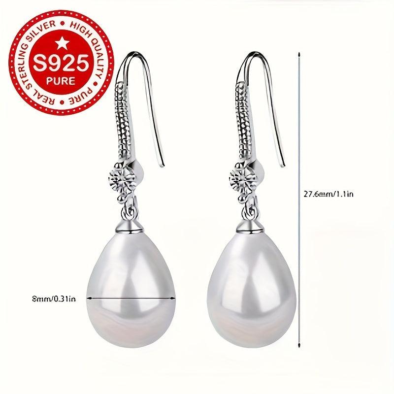 French Vintage S925 Pure Silvery Inlaid with Shell Beads Party Earrings