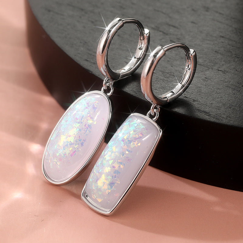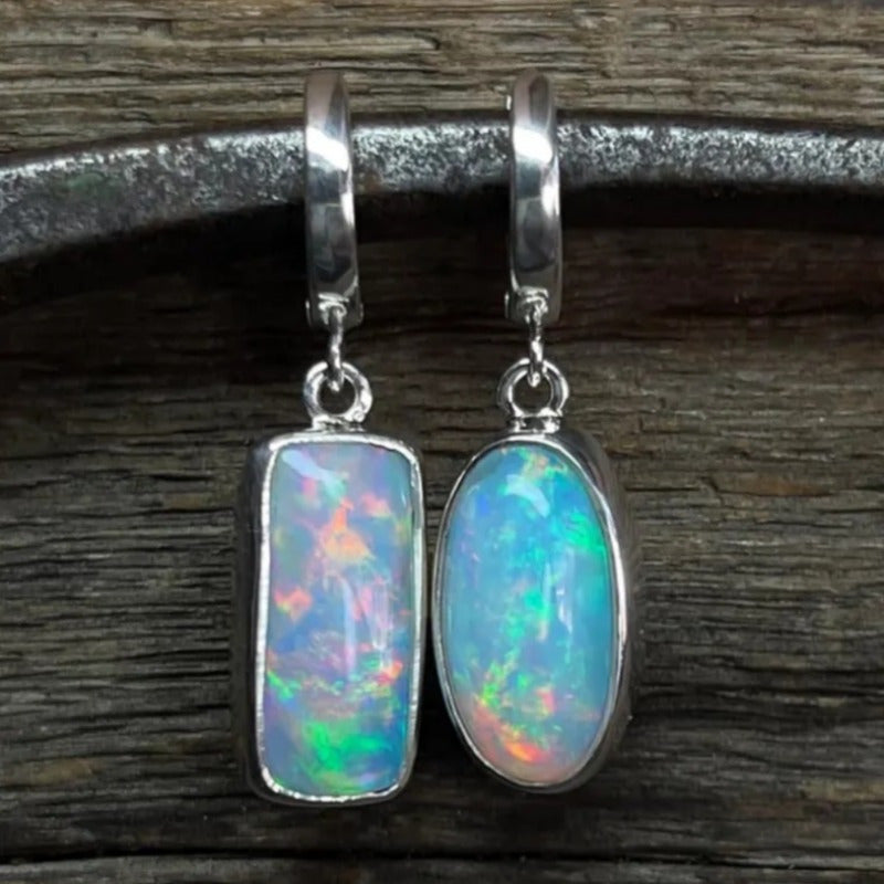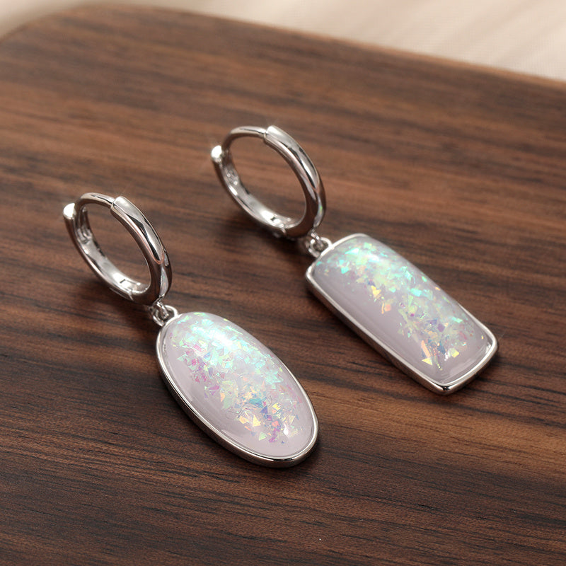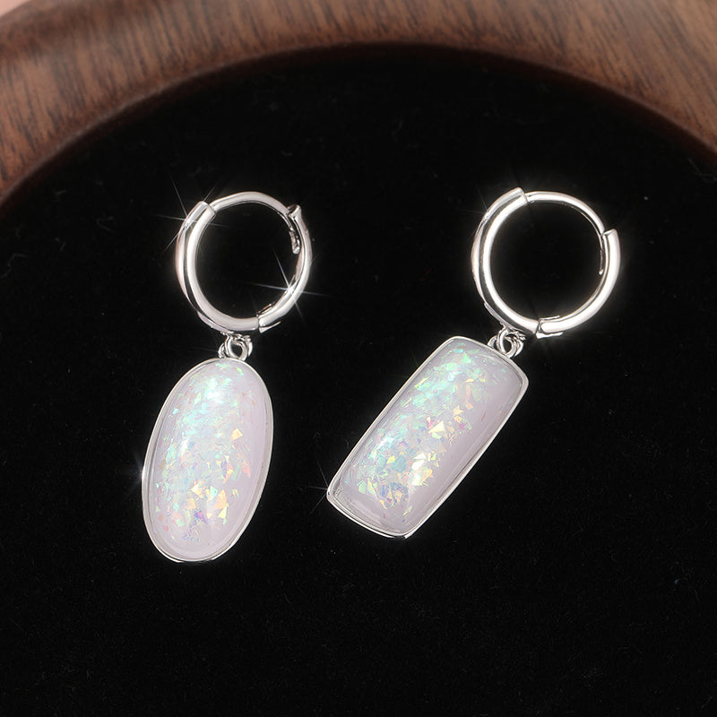 Geometric Asymmetrical Earrings Oval & Square Gemstone Vintage Style