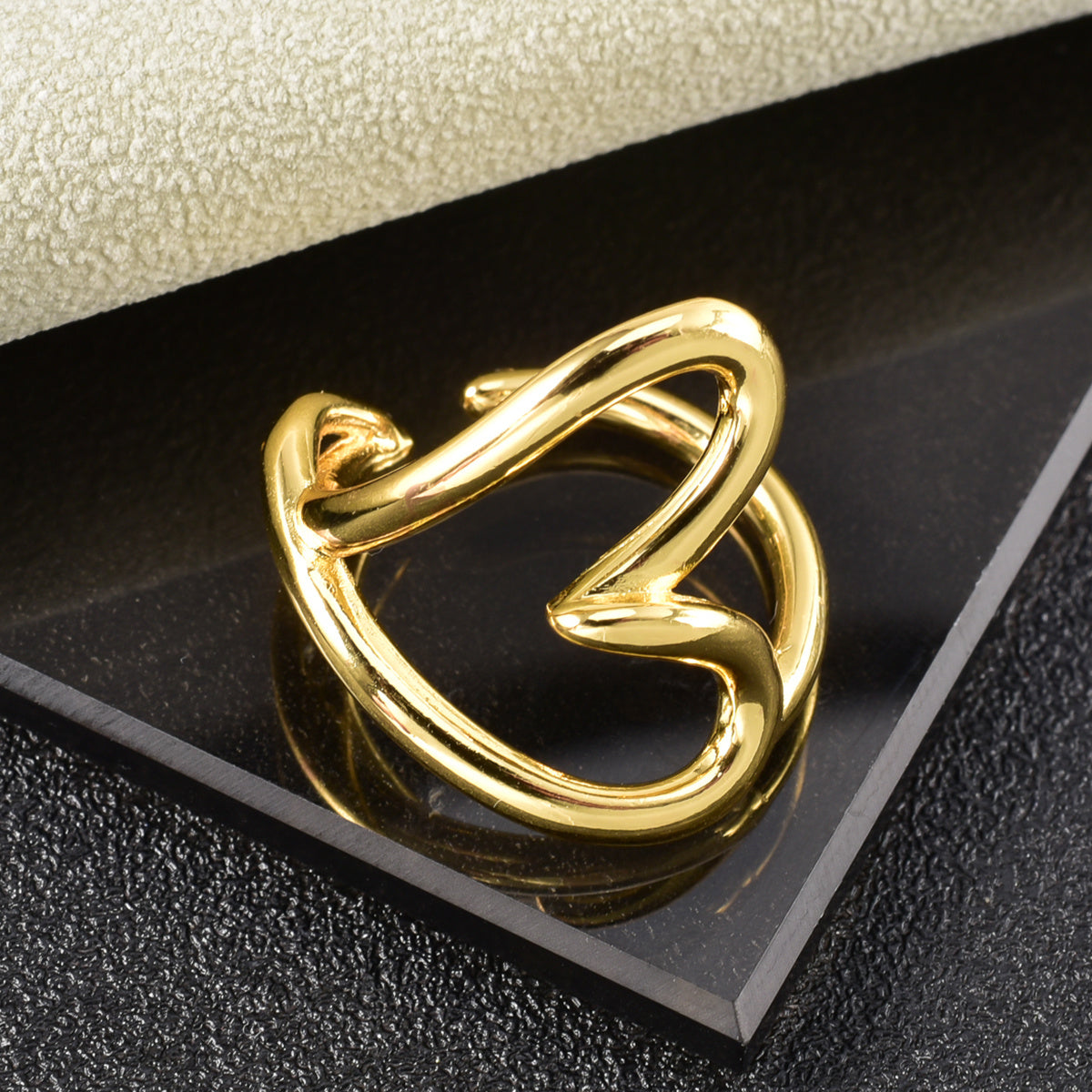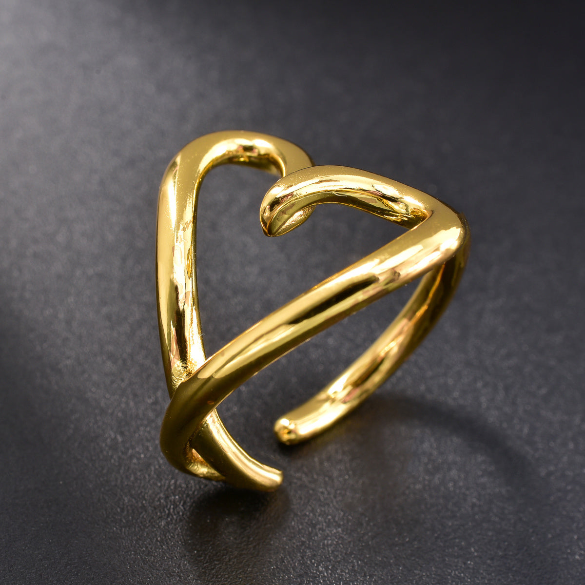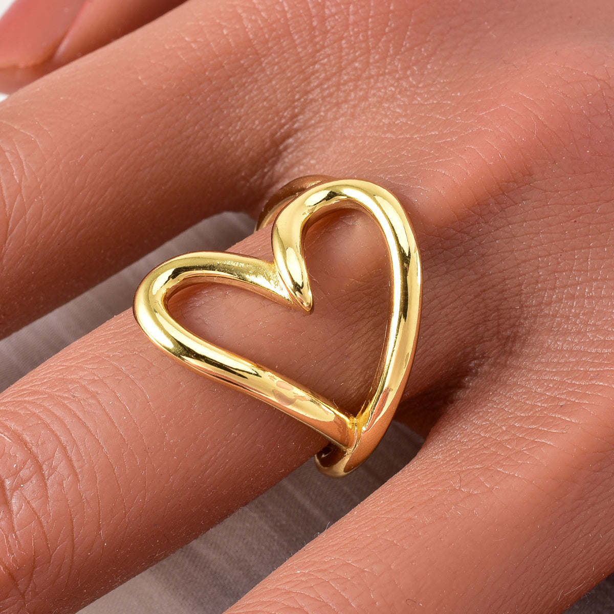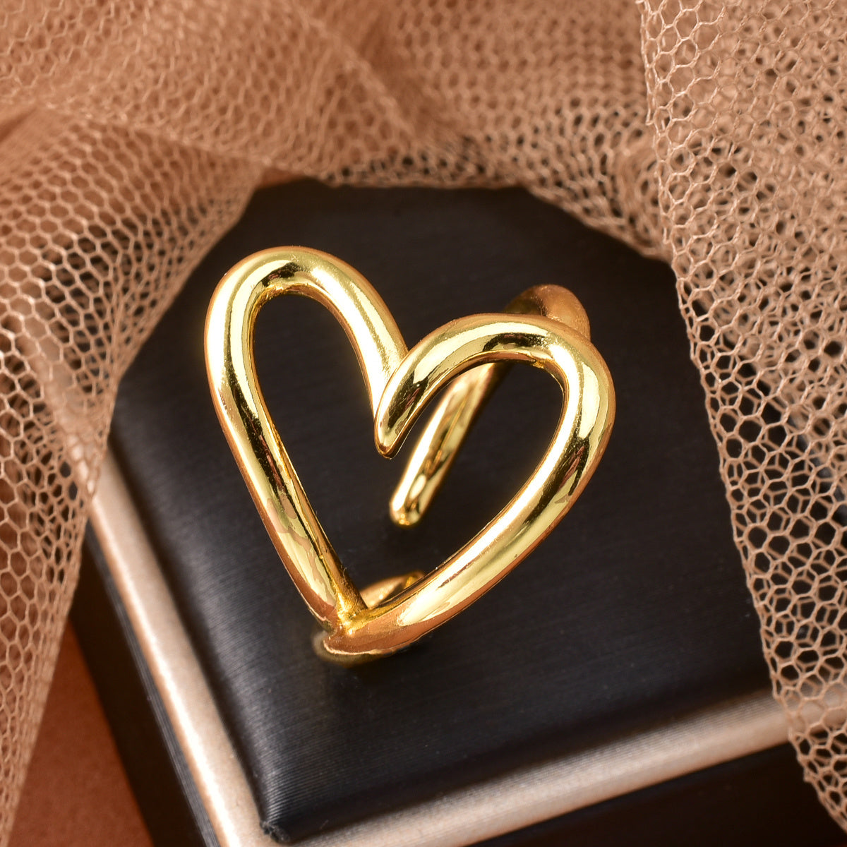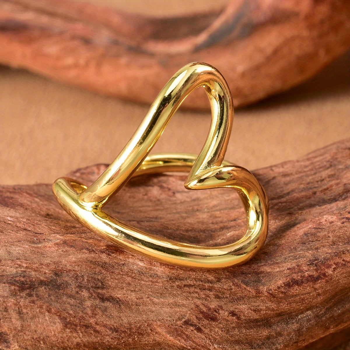 This elegant geometric heart line gold-tone metal ring is perfect for wedding, casual attire, and as a Mother's Valentine jewelry gift item.