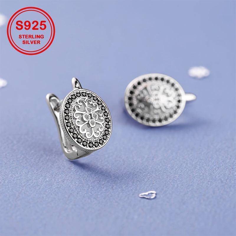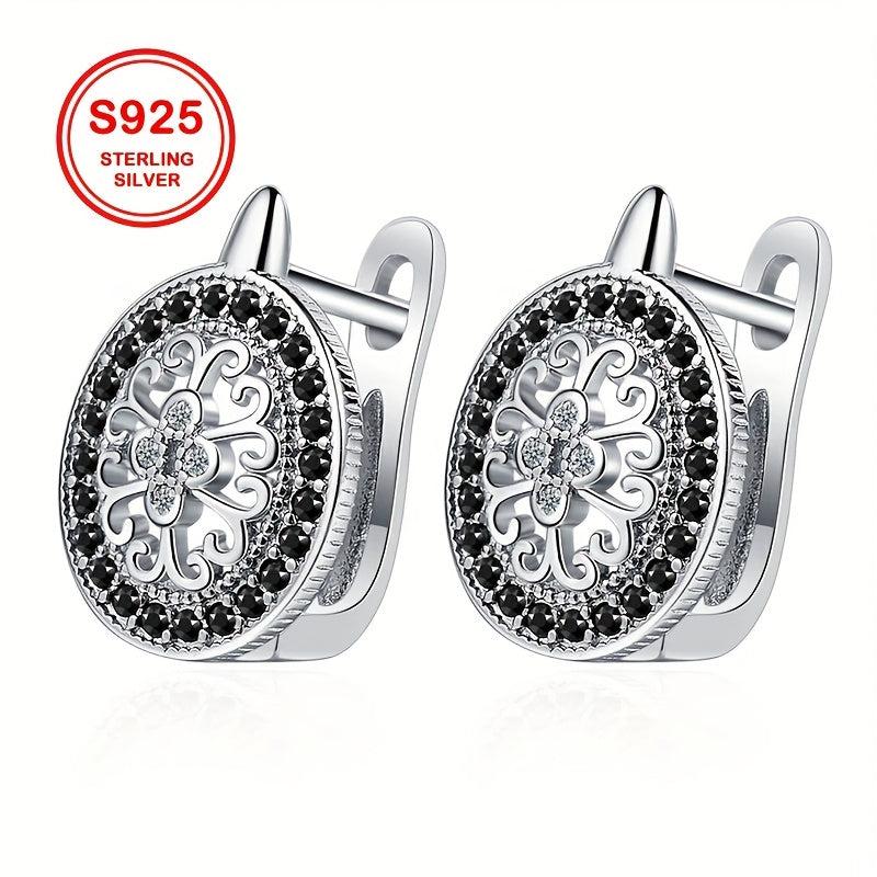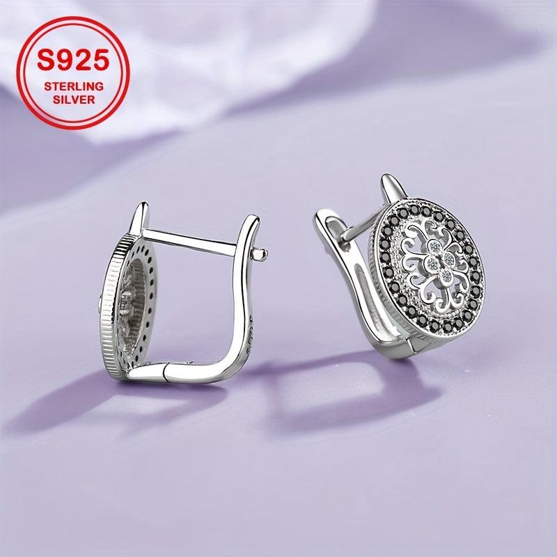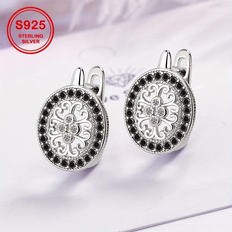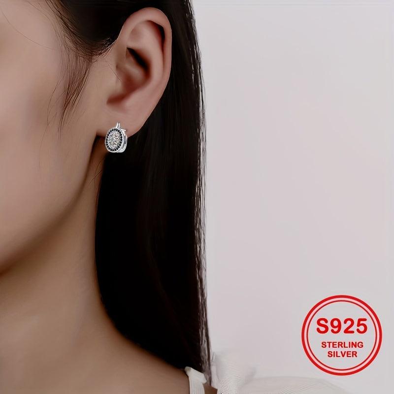 Elegant pair of women's earrings featuring geometric shapes and high-end inlaid synthetic zirconia. Crafted from S925 silver, perfect for daily wear or special occasions. Ideal as a Valentine's gift or holiday present.