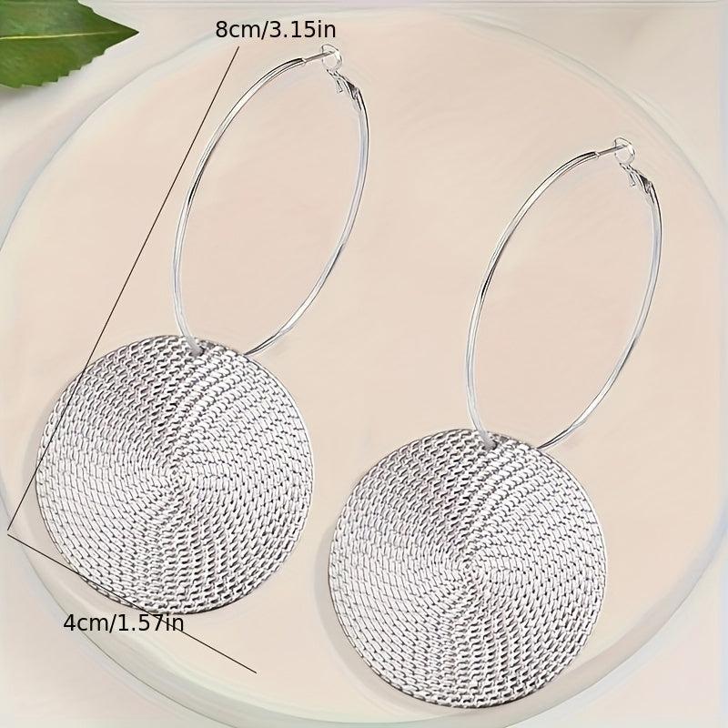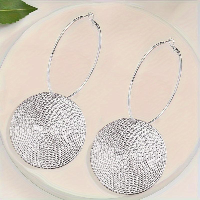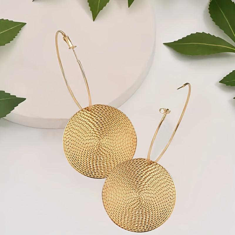 These stylish hoop earrings feature a creative geometric spiral pattern on round discs, perfect for adding a touch of flair to your everyday street style. They make a great gift for any season.